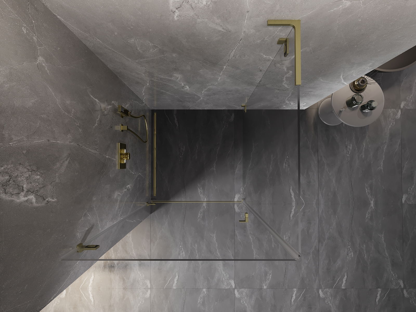 Mexen Lunar-B L sprchový kút s otváracími ľavými dverami 90 x 90 cm, priehľadný, zlatý kartáčovaný - 832L-090-090-55-00-L