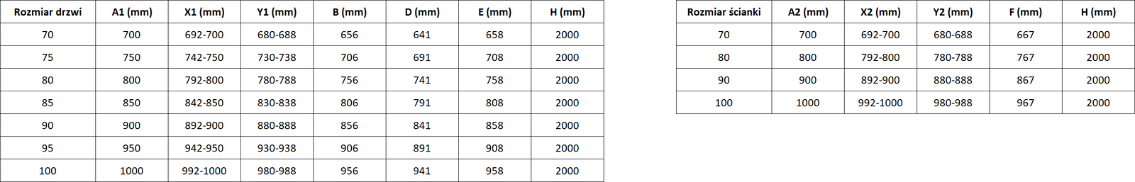 Veľkosť: 80x70 cm (pravé dvere 80 cm, panel 70 cm)