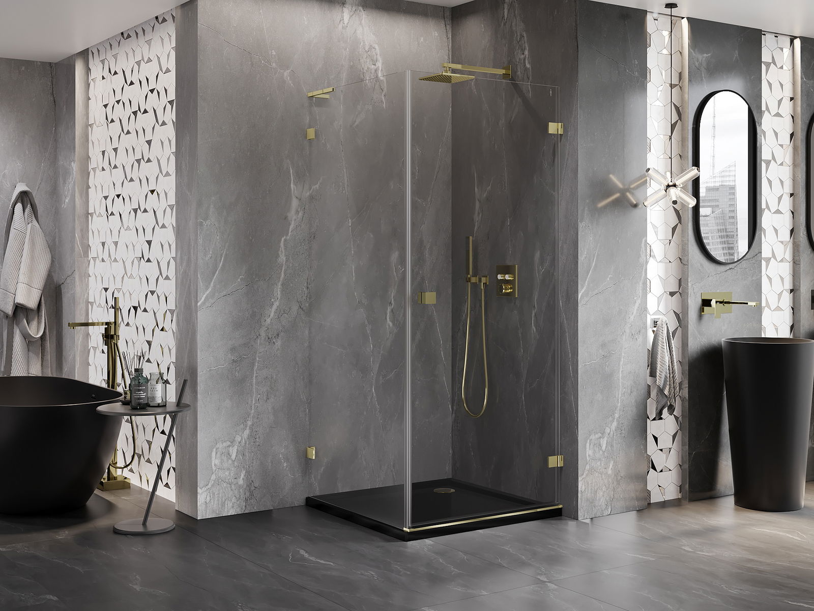 Mexen Lunar-B L sprchová kabína s otváraním pravá 90 x 90 cm, transparentná, zlatá - 832L-090-090-50-00-P