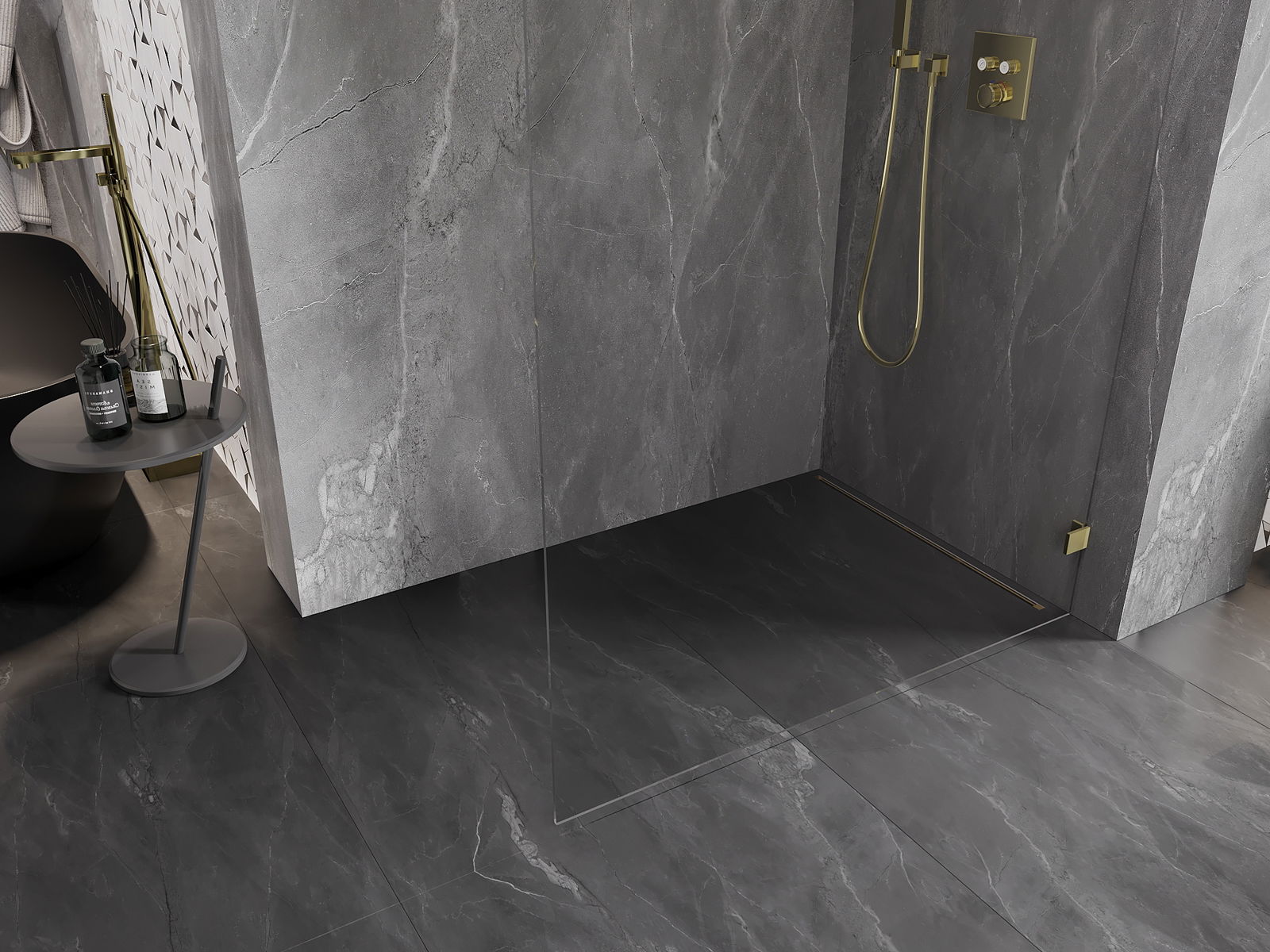 Mexen Lunar sprchová stena Walk-in pravá 50 x 200 cm, transparentná 8 mm, zlatá - 830-050-000-50-00-P