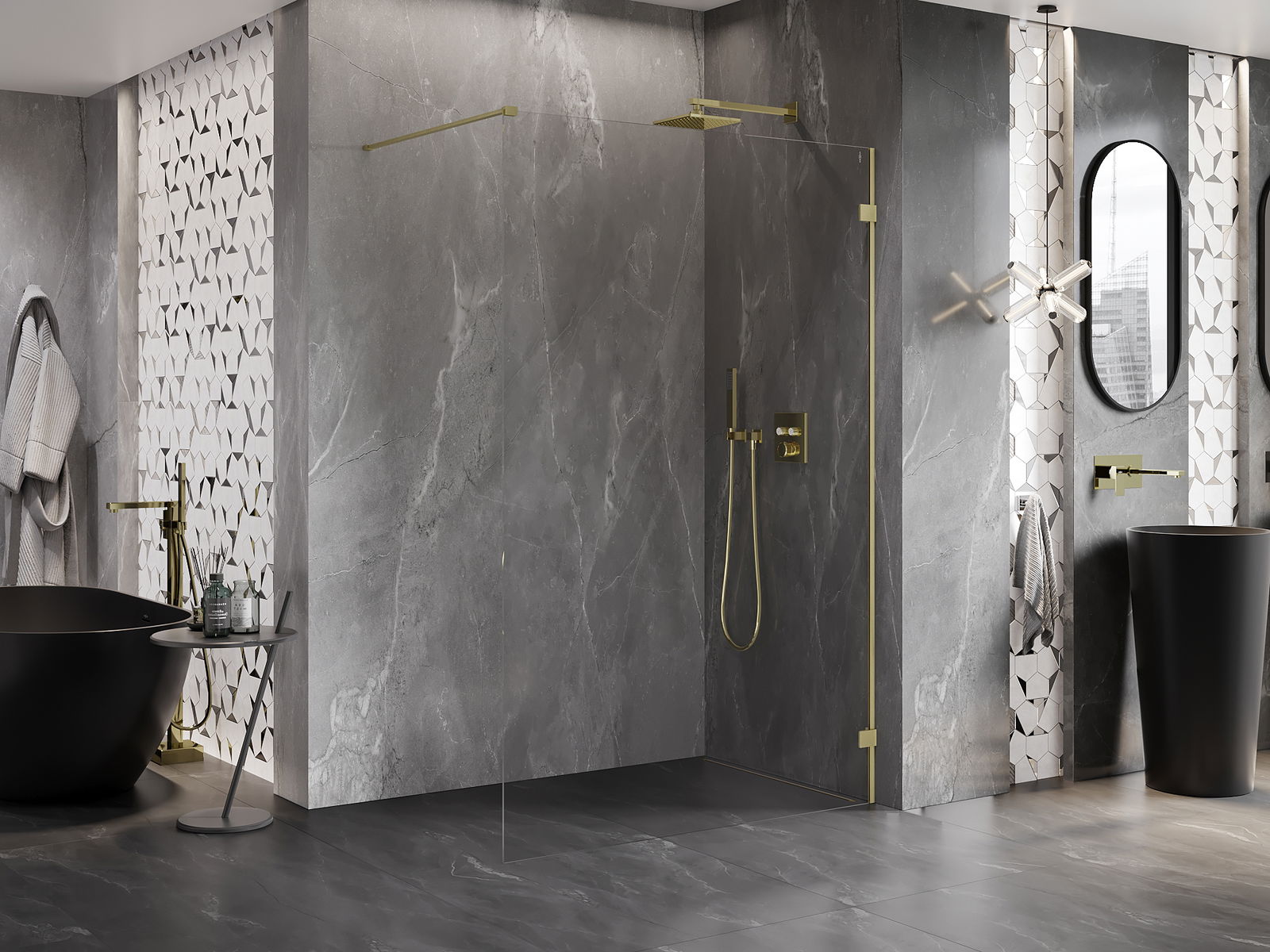 Svorky sú vyrobené z veľmi odolnej mosadze a navyše vytvárajú zapustenú tabuľu skla. Je to vynikajúca voľba, ktorá spája eleganciu, odolnosť a moderný dizajn. Vďaka takýmto riešeniam získa sprcha na estetike a zároveň uľahčuje údržbu čistoty.