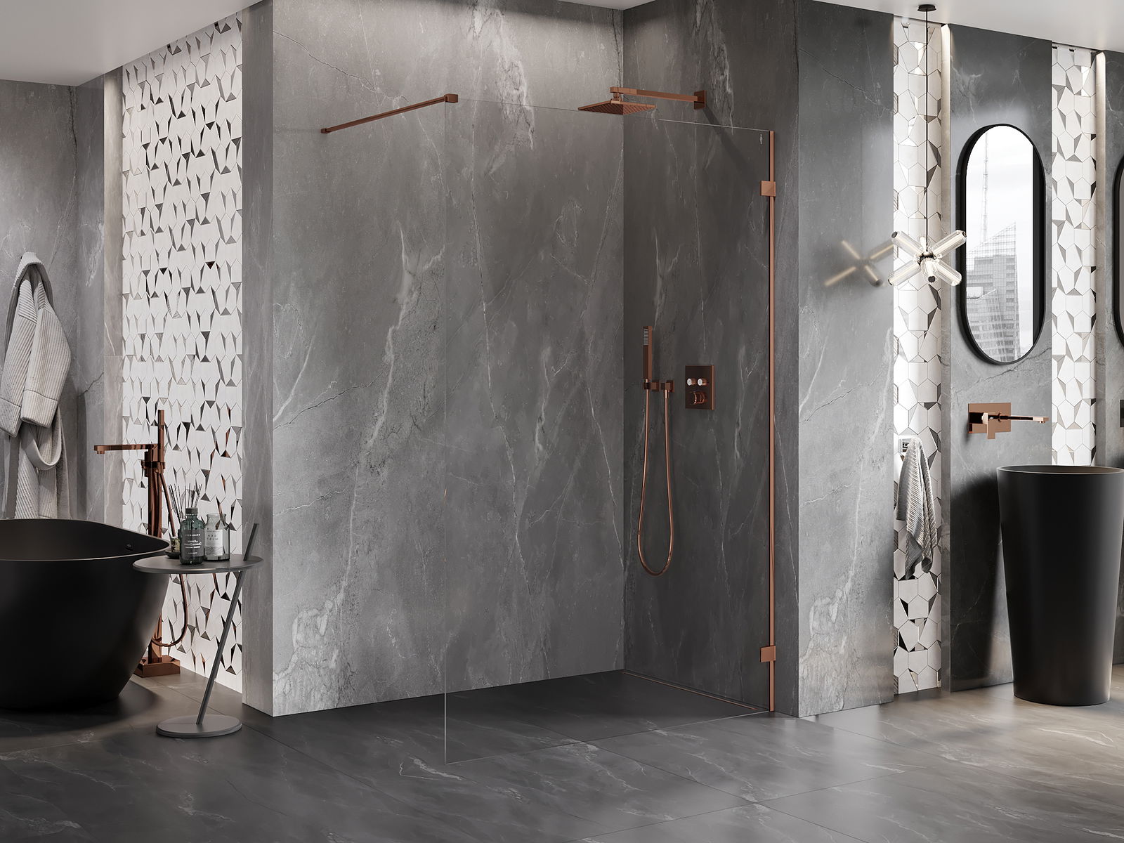 Svorky sú vyrobené z veľmi odolnej mosadze a navyše vytvárajú zapustenú tabuľu skla. Je to vynikajúca voľba, ktorá spája eleganciu, odolnosť a moderný dizajn. Vďaka takýmto riešeniam získa sprcha na estetike a zároveň uľahčuje údržbu čistoty.