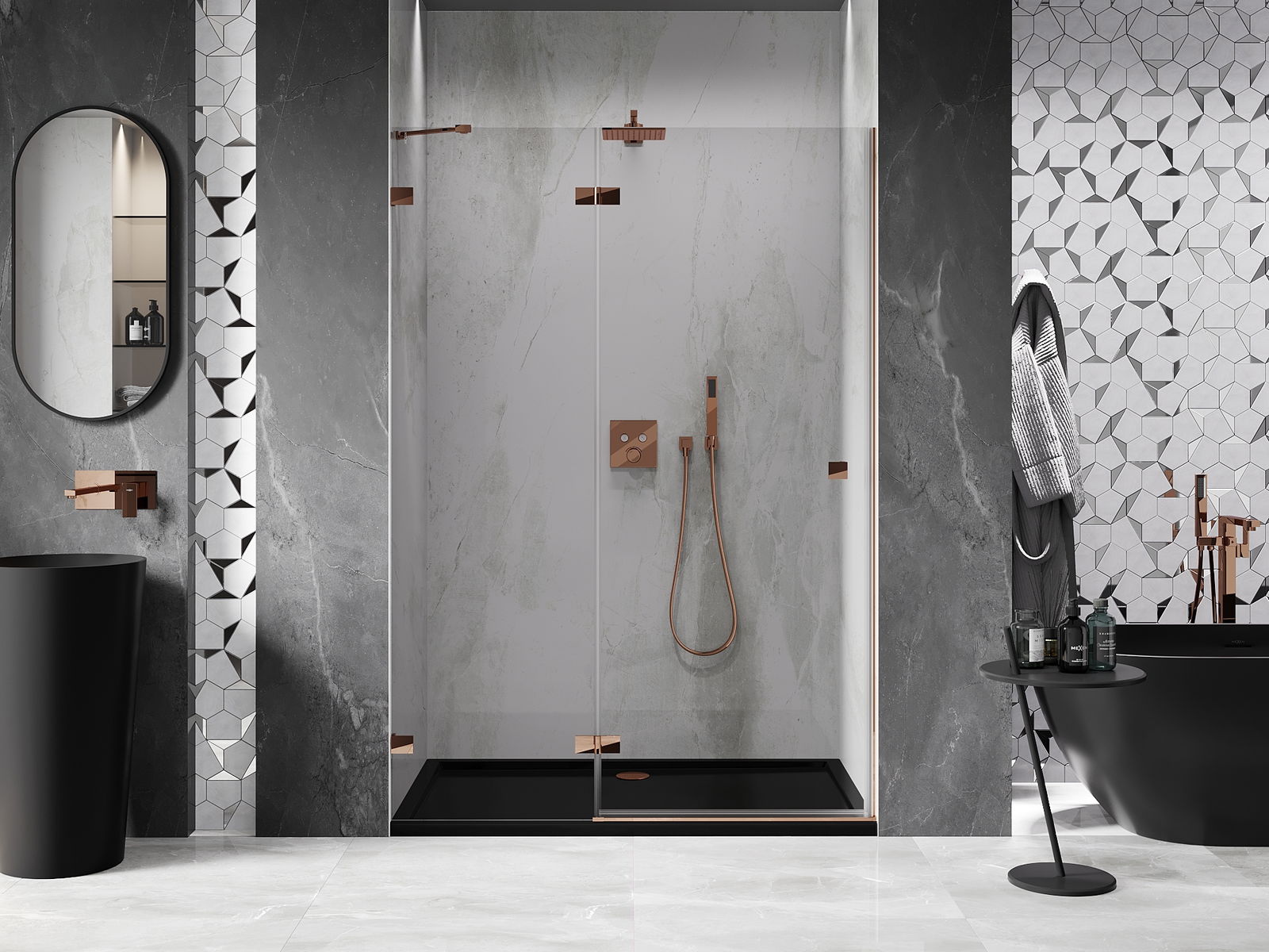 Mexen Lunar sprchové dvere otvárateľné ľavé 135 cm, transparentné, ružové zlato - 834-135-000-60-00-L