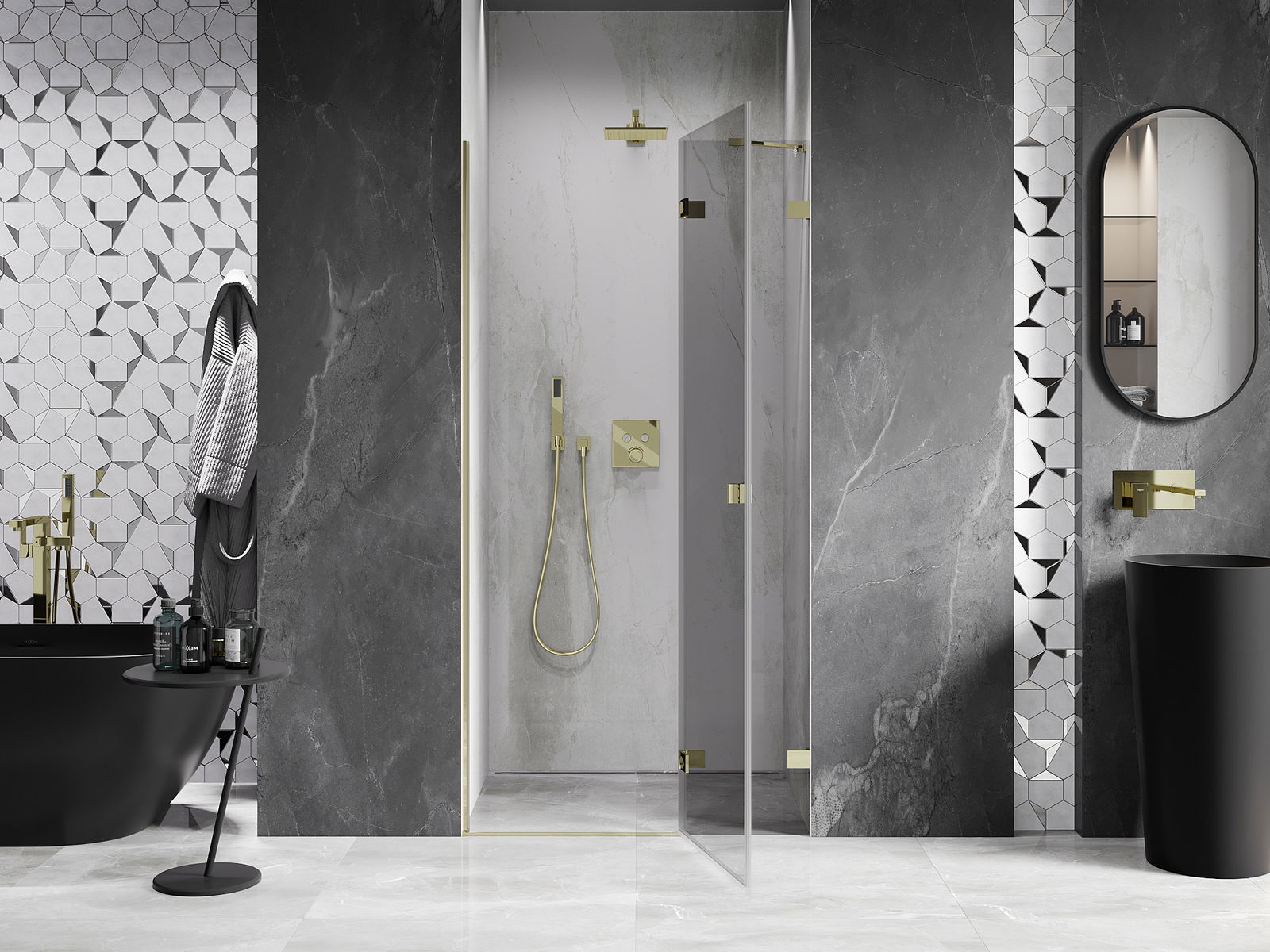 Mexen Lunar sprchové dvere otvárateľné pravé 85 cm, priehľadné, zlaté - 834-085-000-50-00-P
