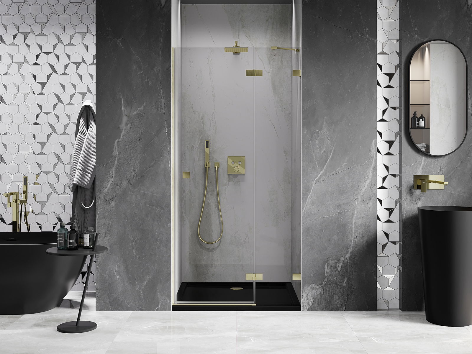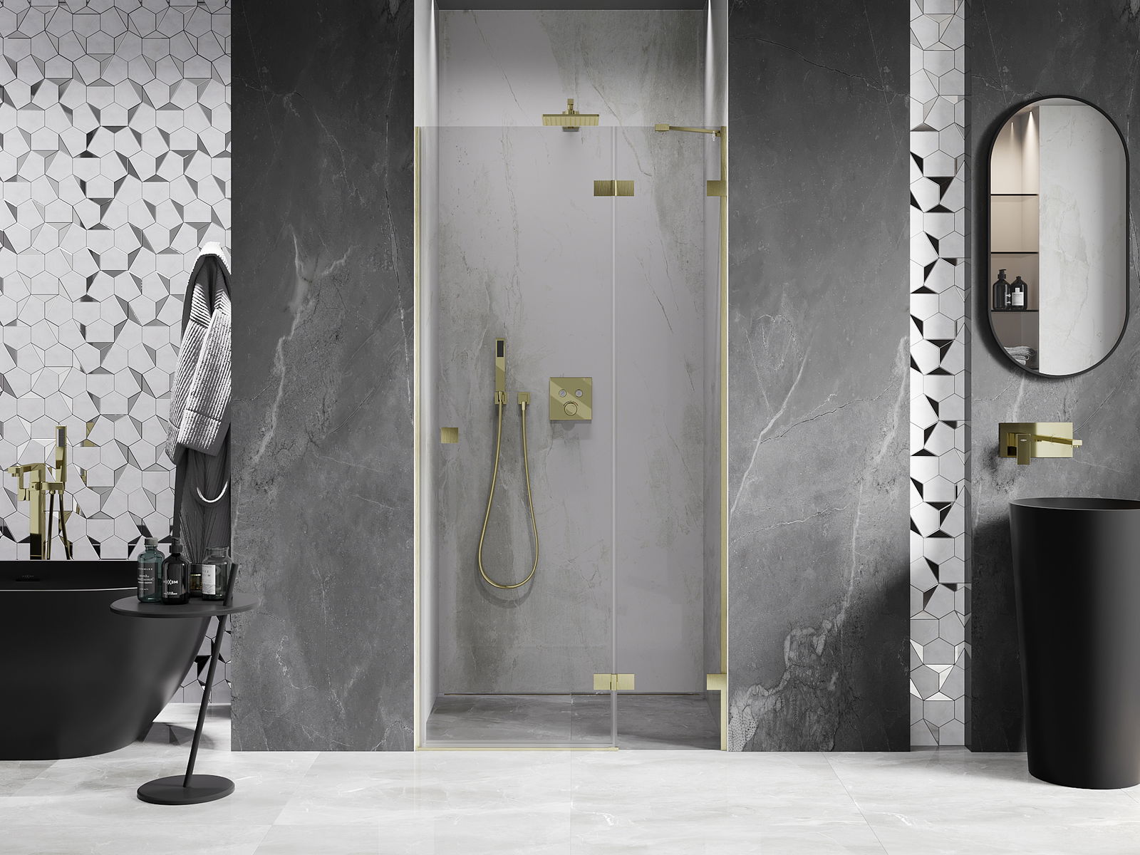 Mexen Lunar sprchové dvere otočné pravé 90 cm, transparentné, zlaté brúsené - 834-090-000-55-00-P