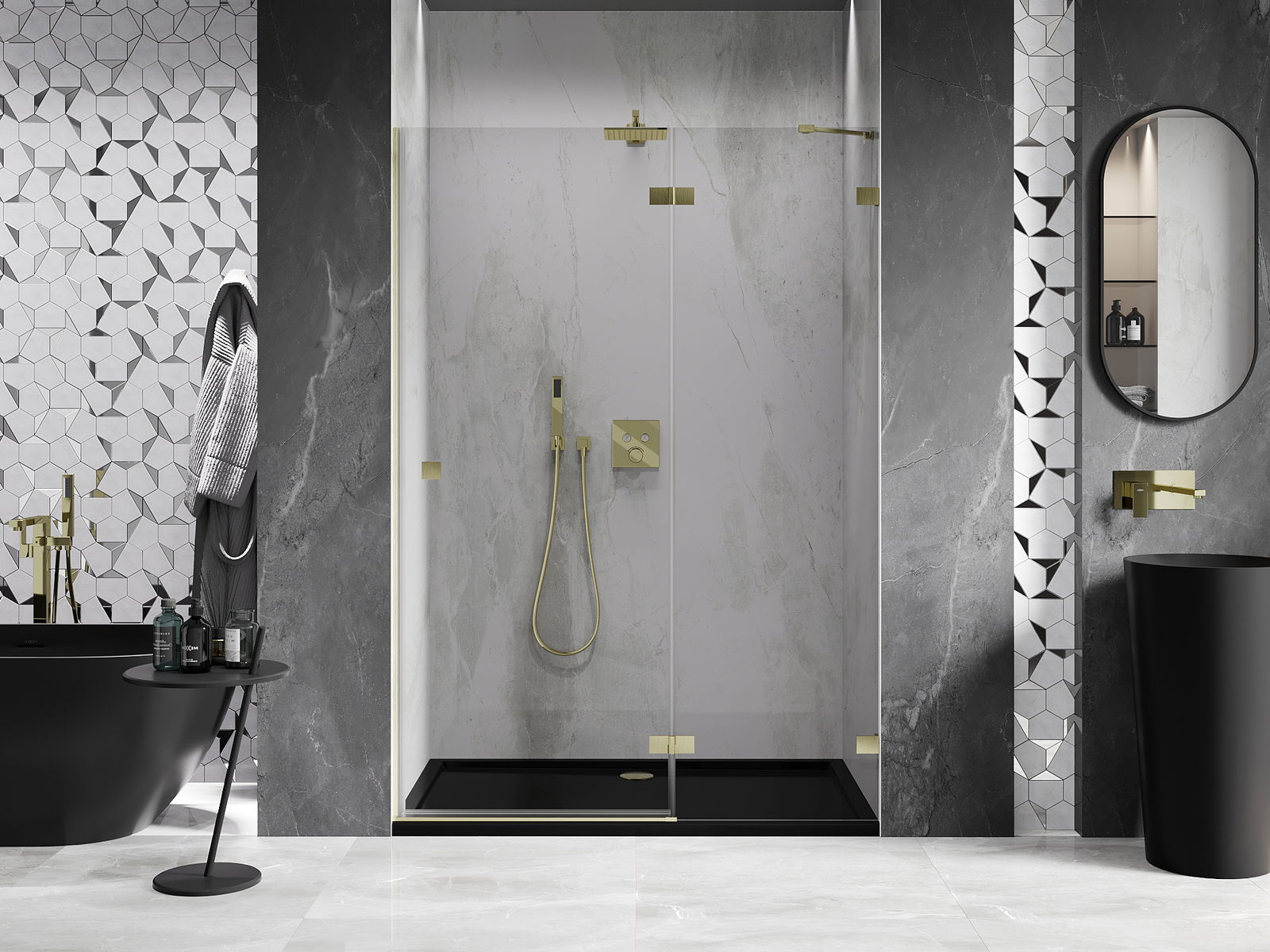 Mexen Lunar sprchové dvere otváracie pravé 130 cm, priehľadné, zlaté kartáčované - 834-130-000-55-00-P