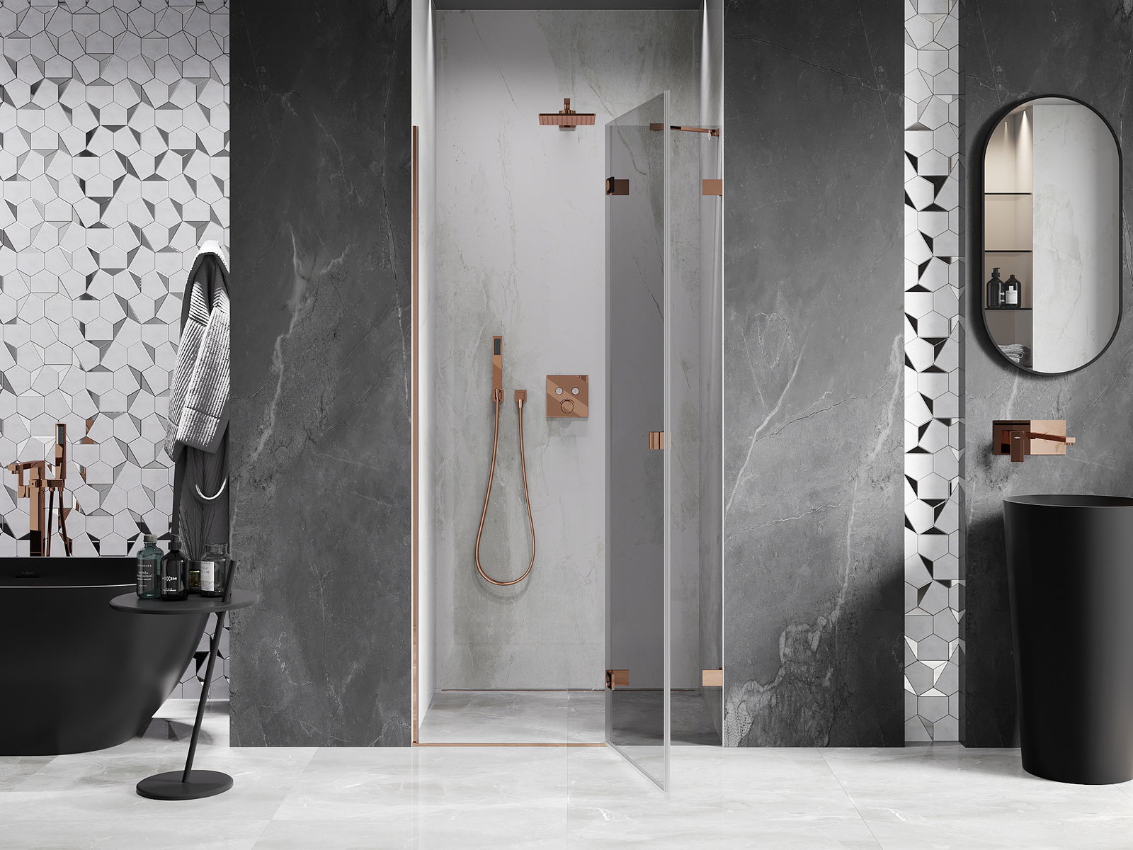 Mexen Lunar sprchové dvere výklopné pravé 110 cm, transparentné, ružové zlato - 834-110-000-60-00-P