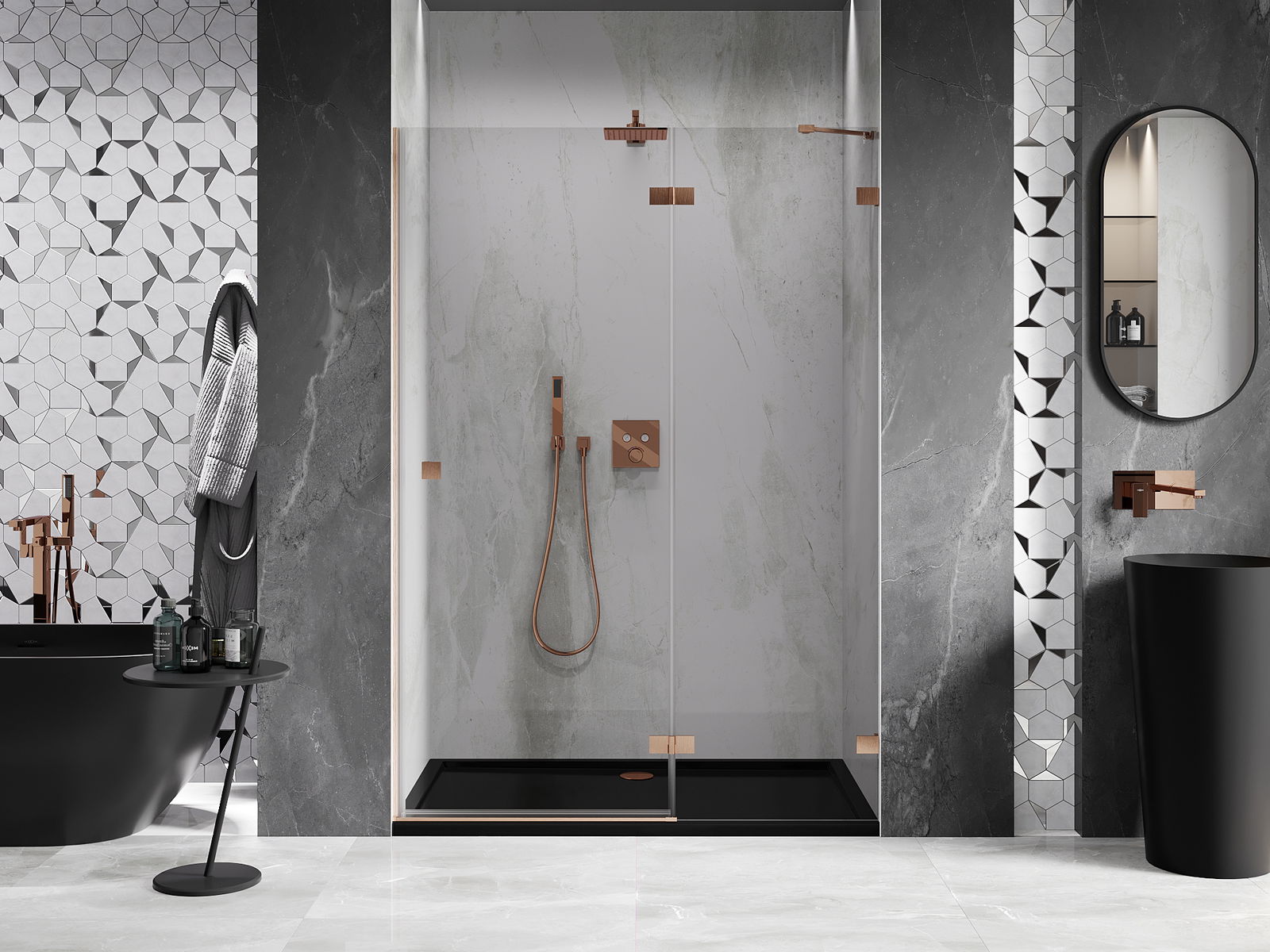 Mexen Lunar sprchové dvere otočné pravé 130 cm, transparentné, brúsená meď - 834-130-000-65-00-P