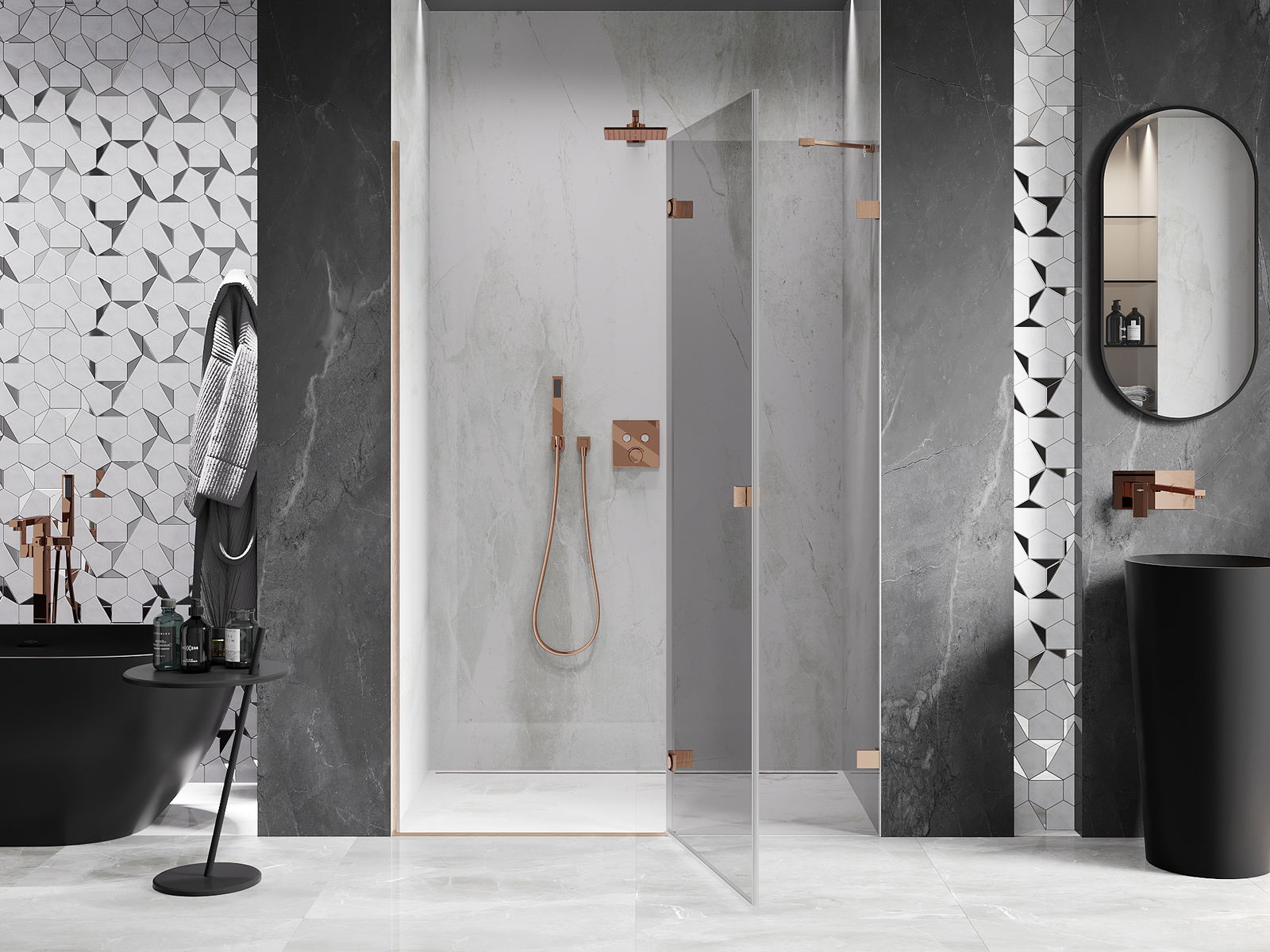 Mexen Lunar sprchové dvere výkyvné pravé 135 cm, transparentné, brúsená meď - 834-135-000-65-00-P