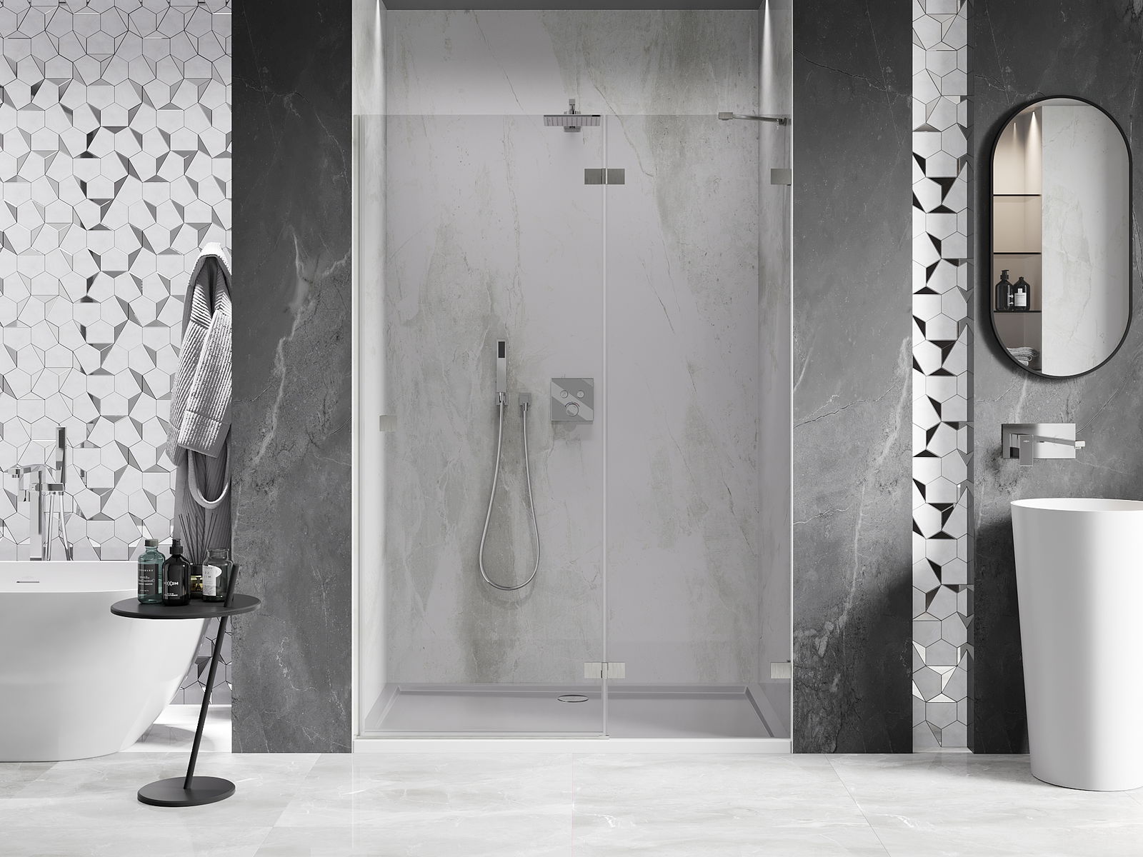 Produkt je možné podľa potreby namontovať ako na sprchovej vaničke, tak aj priamo na podlahe. Univerzálny spôsob montáže umožňuje prispôsobiť produkt rôznym typom kúpeľní a konfiguráciám priestoru.