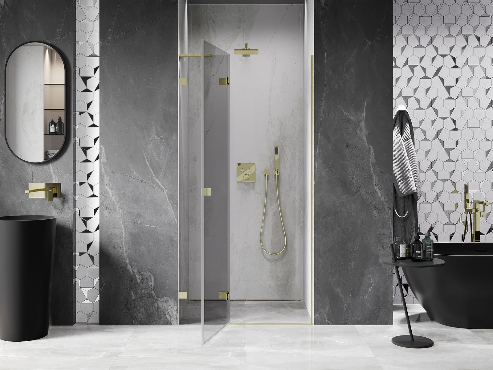 Svorky a závesy boli vyrobené z veľmi odolnej mosadze a navyše vytvárajú zarovnanú tabuľu skla. Je to vynikajúci výber, ktorý spája eleganciu, trvanlivosť a moderný dizajn. Vďaka takýmto riešeniam sprcha získa na estetike a zároveň uľahčujú udržiavanie čistoty.