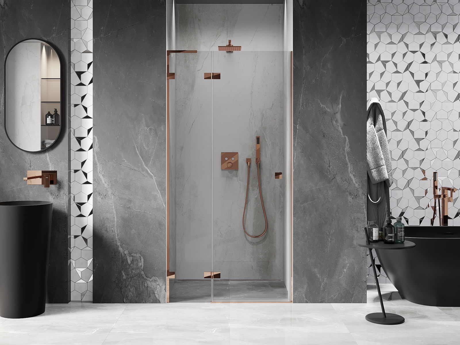 Mexen Lunar L sprchové dvere výklopné ľavé 115 cm, transparentné, ružové zlato - 834L-115-000-60-00-L