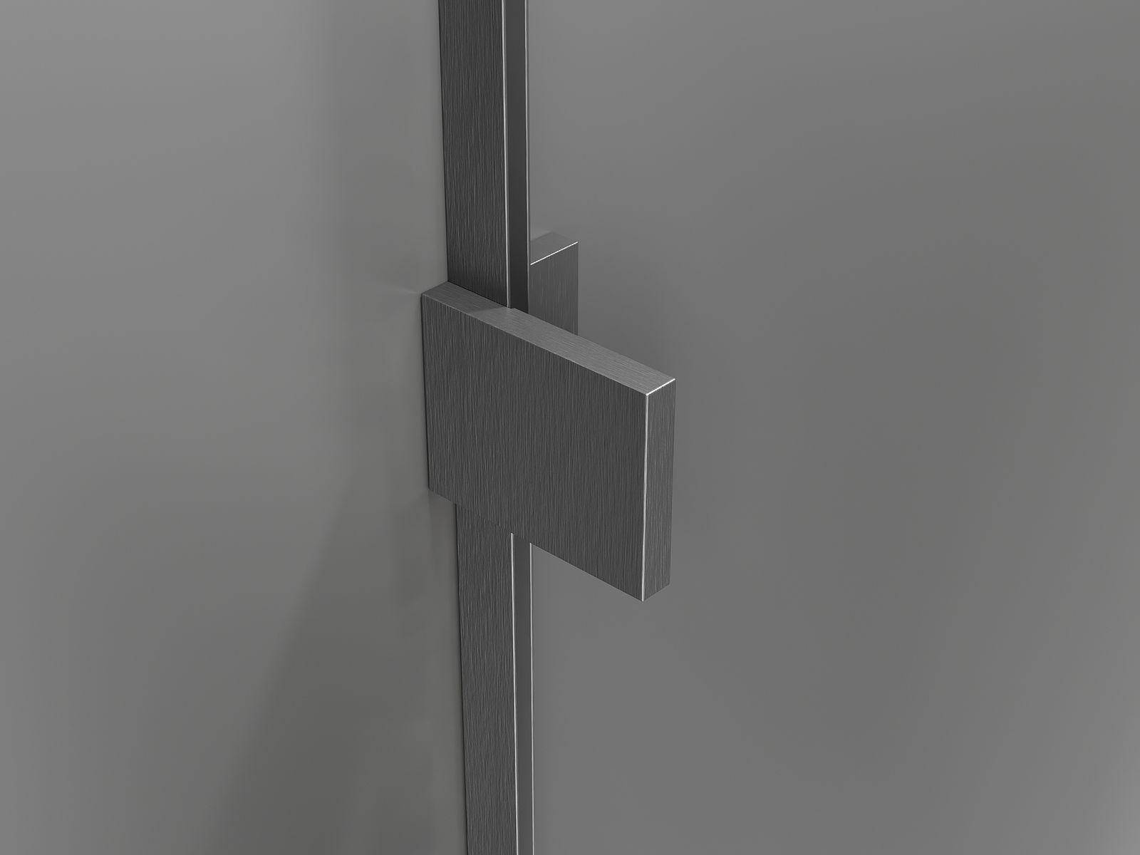Praktická a pohodlná rukoväť je vyrobená z odolného a pevného kovu. Moderný tvar v kombinácii s povrchovou úpravou prispôsobenou farbe profilov dodáva celku moderný a štýlový vzhľad, zdôrazňujúc estetiku každej kúpeľne.