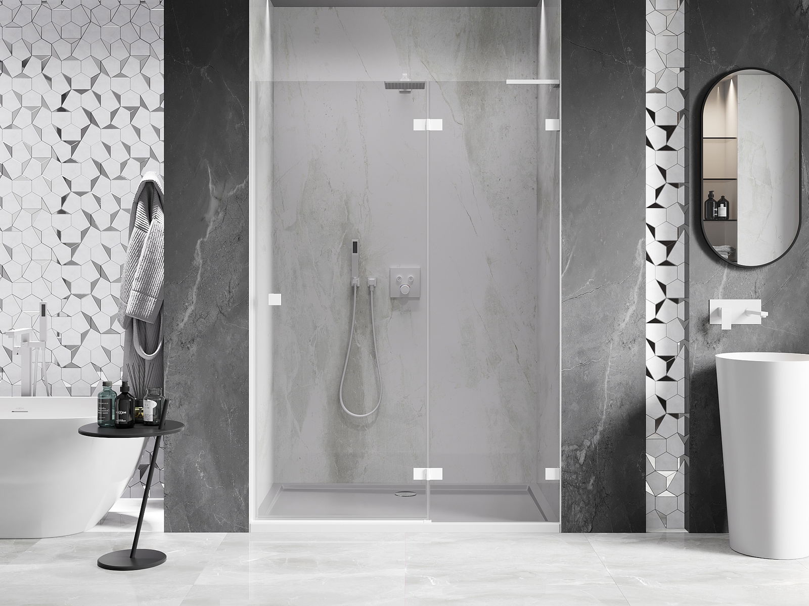 Produkt je možné podľa potreby namontovať ako na sprchovej vaničke, tak aj priamo na podlahe. Univerzálny spôsob montáže umožňuje prispôsobiť produkt rôznym typom kúpeľní a konfiguráciám priestoru.