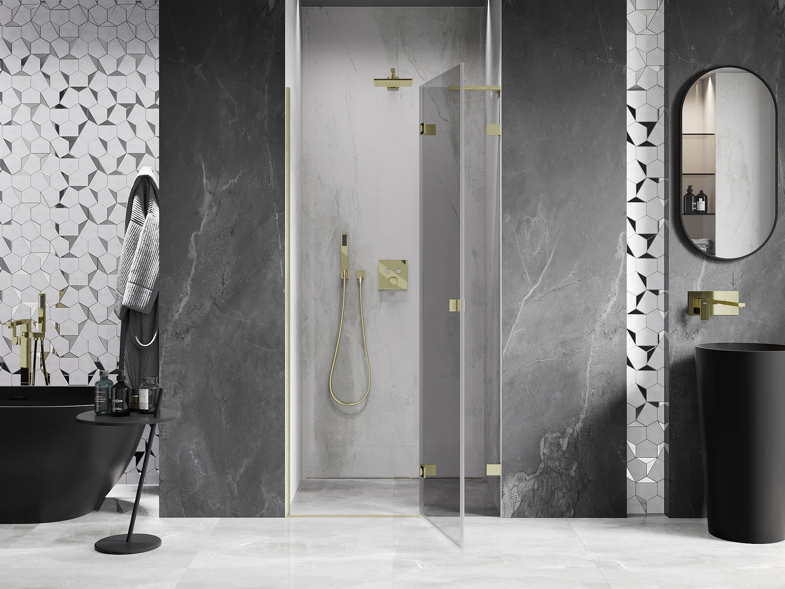 Mexen Lunar L sprchové dvere otočné pravé 75 cm, transparentné, zlaté kartáčované - 834L-075-000-55-00-P