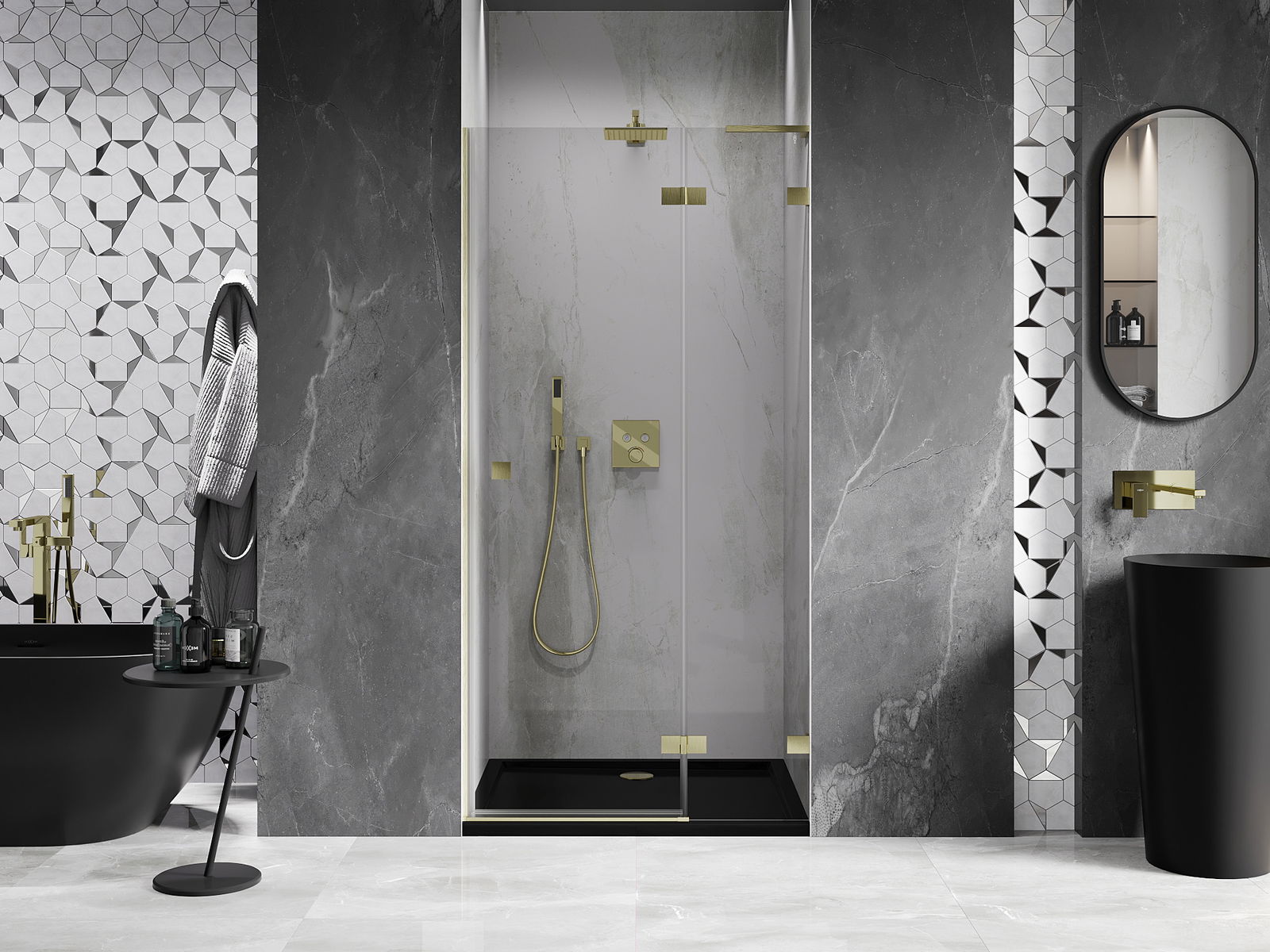 Mexen Lunar L sprchové dvere otvárateľné pravé 95 cm, transparentné, zlaté kartáčované - 834L-095-000-55-00-P