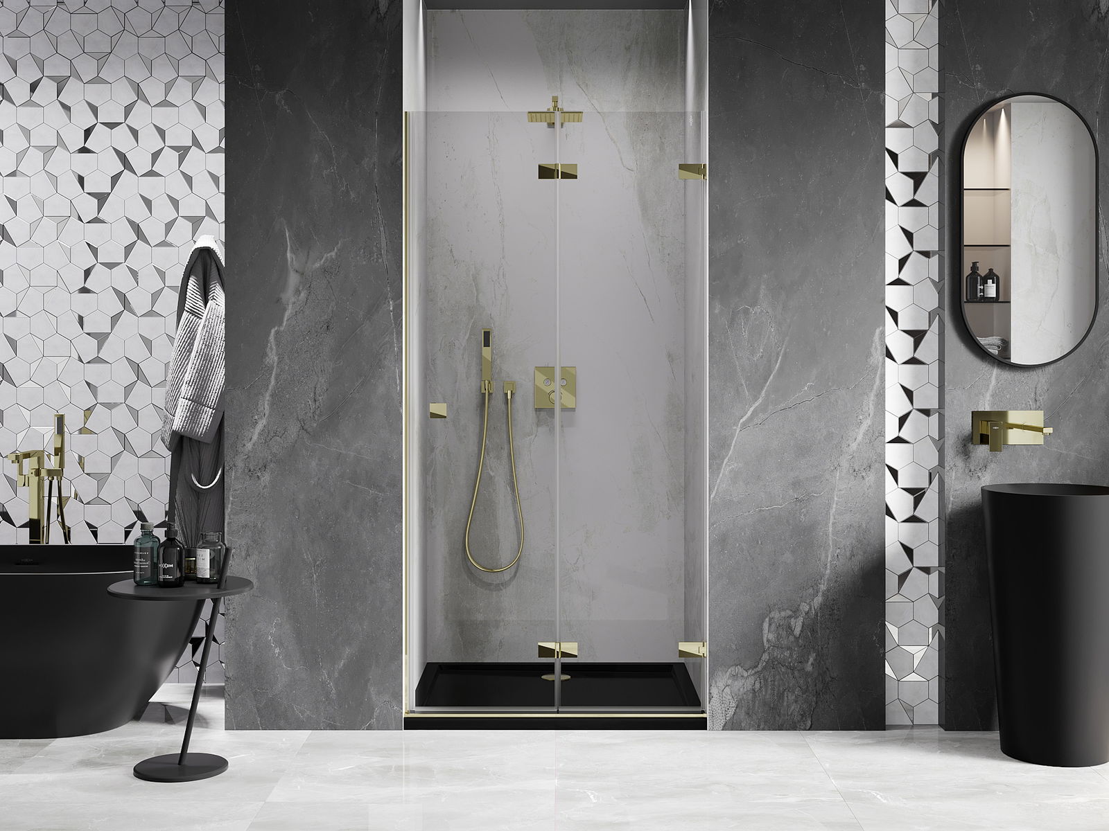 Možnosť skladania dverí, ako smerom von, tak aj smerom dnu, umožňuje získať viac priestoru počas nepoužívania sprchy. Je to ideálne riešenie pre menšie kúpeľne, maximálne využívajúce dostupnú plochu.