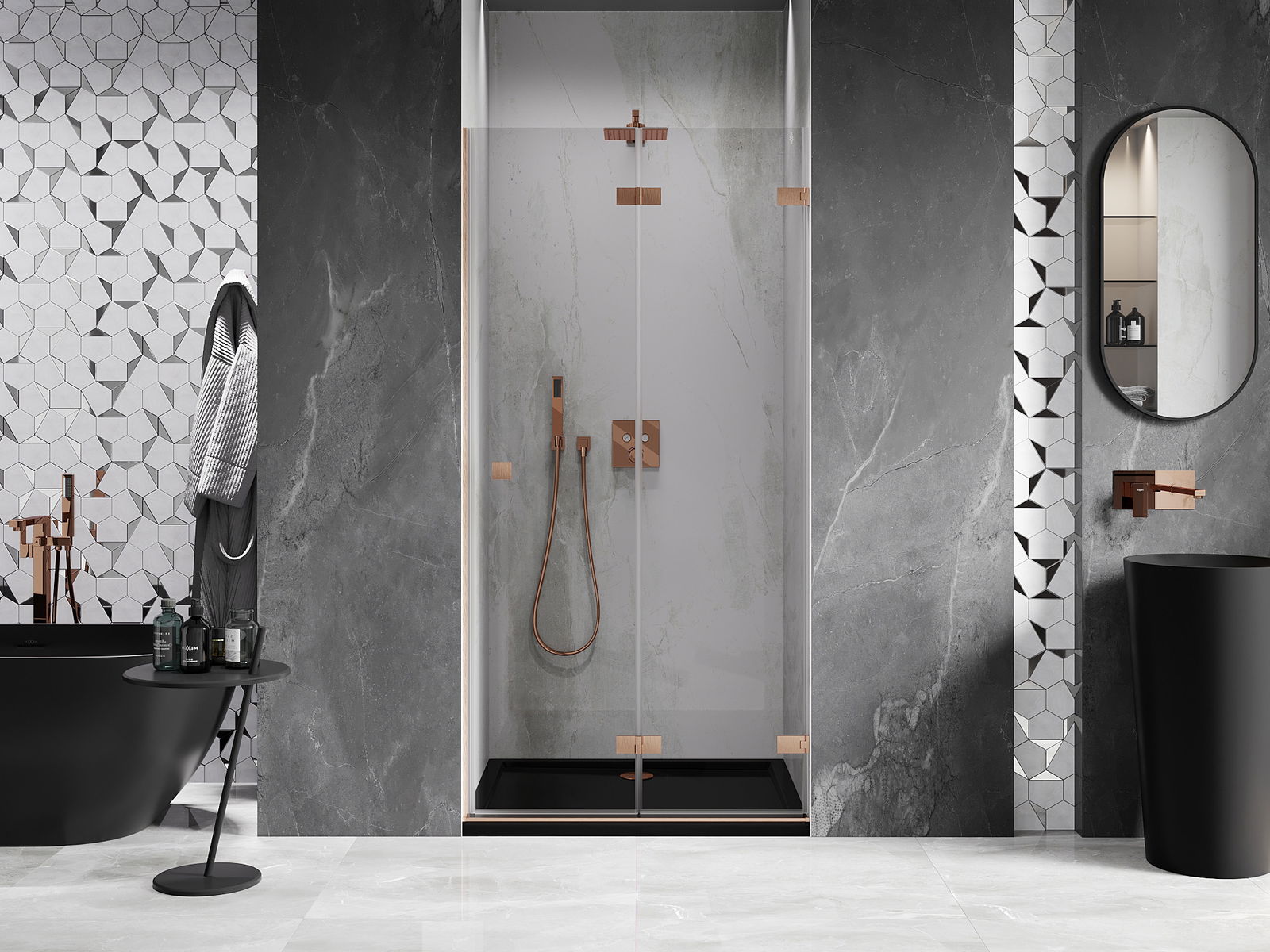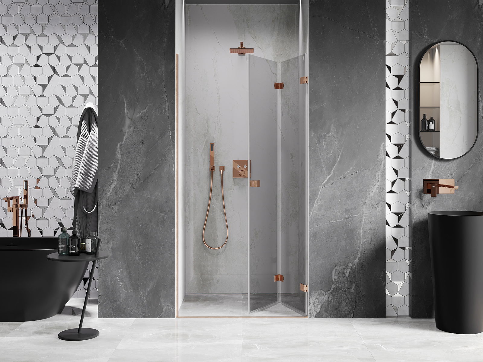 Možnosť skladania dverí, ako smerom von, tak aj smerom dnu, umožňuje získať viac priestoru počas nepoužívania sprchy. Je to ideálne riešenie pre menšie kúpeľne, maximálne využívajúce dostupnú plochu.