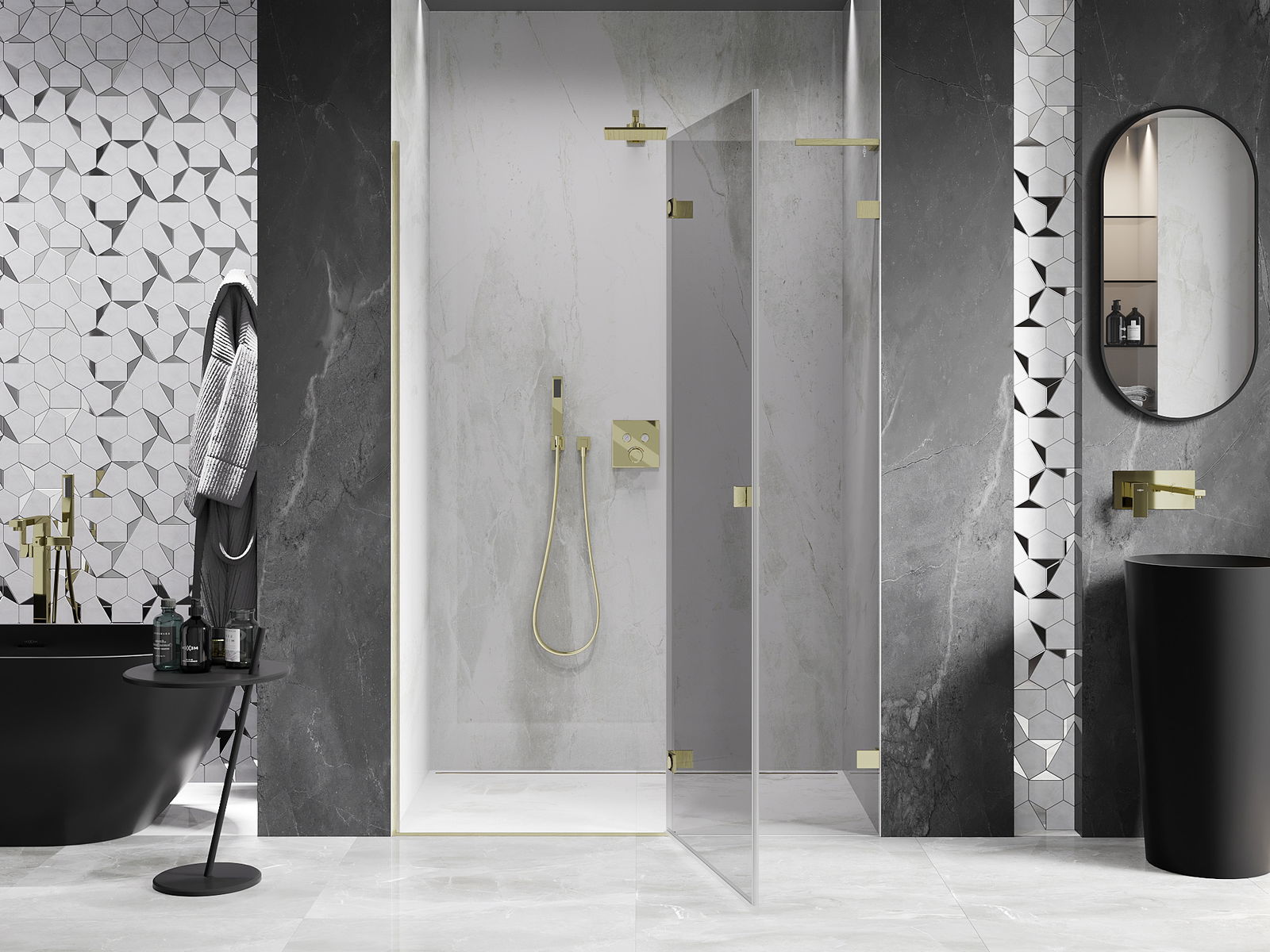 Mexen Lunar L sprchové dvere výklopné pravé 130 cm, priehľadné, zlaté brúsené - 834L-130-000-55-00-P