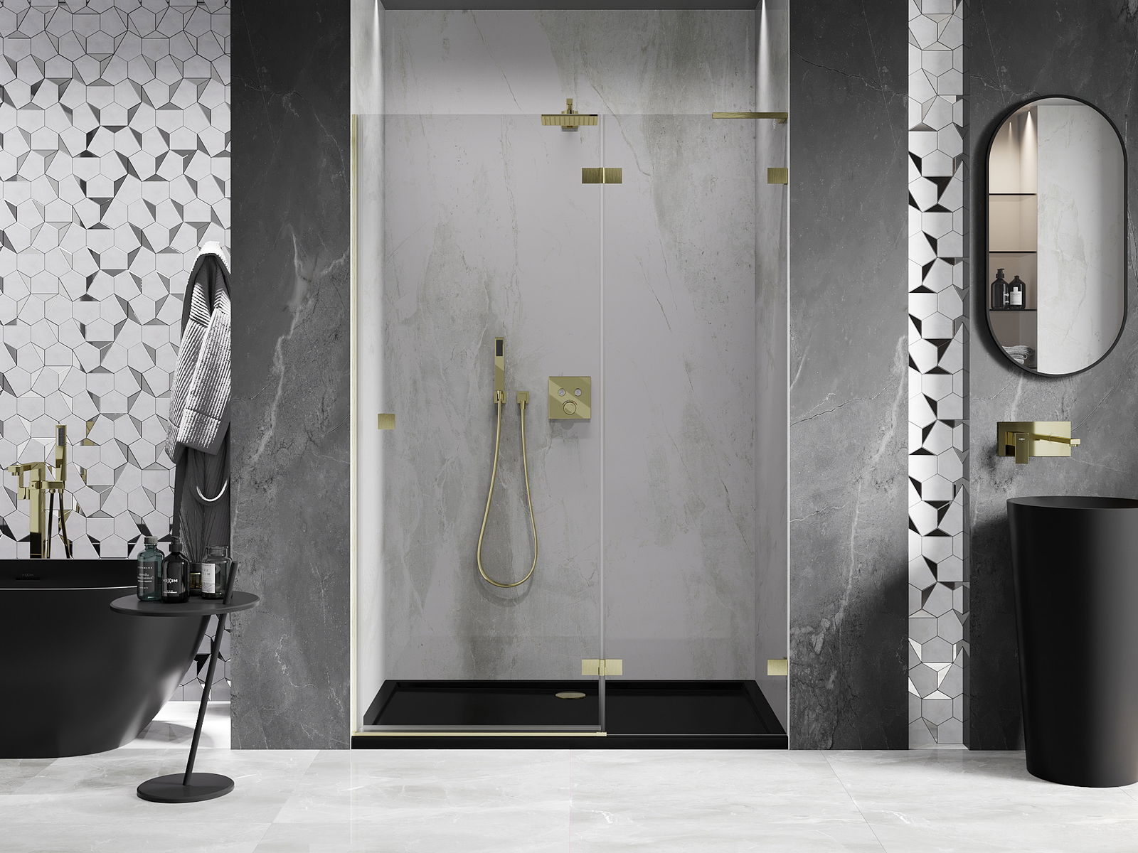 Mexen Lunar L sprchové dvere otočné pravostranné 135 cm, transparentné, zlaté brúsené - 834L-135-000-55-00-P