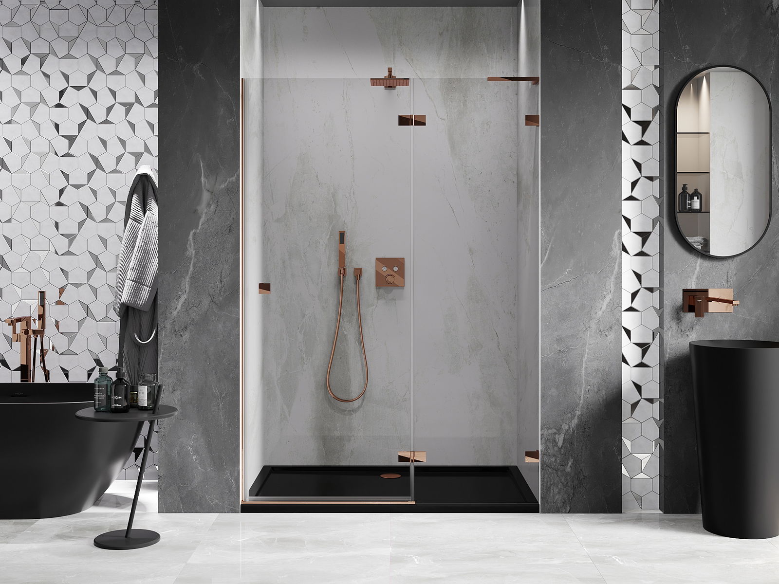 Mexen Lunar L sprchové dvere pravé 135 cm, transparentné, ružové zlato - 834L-135-000-60-00-P