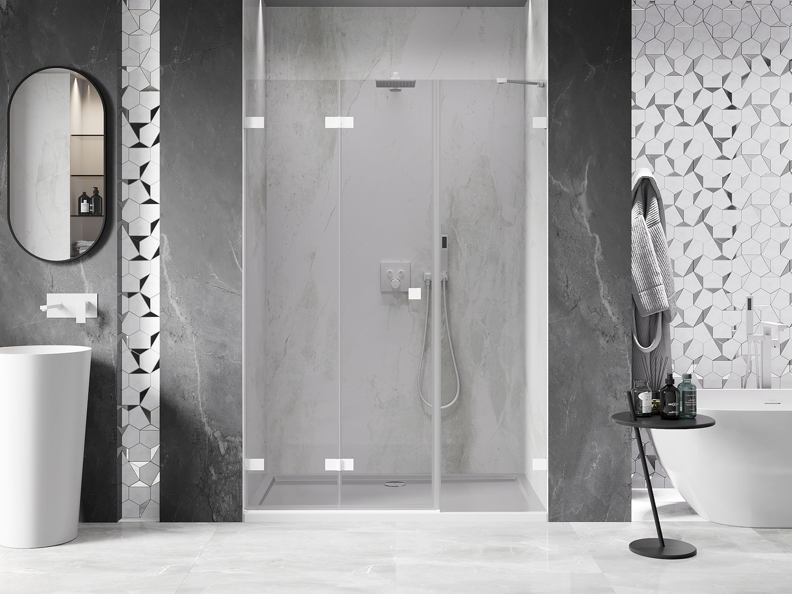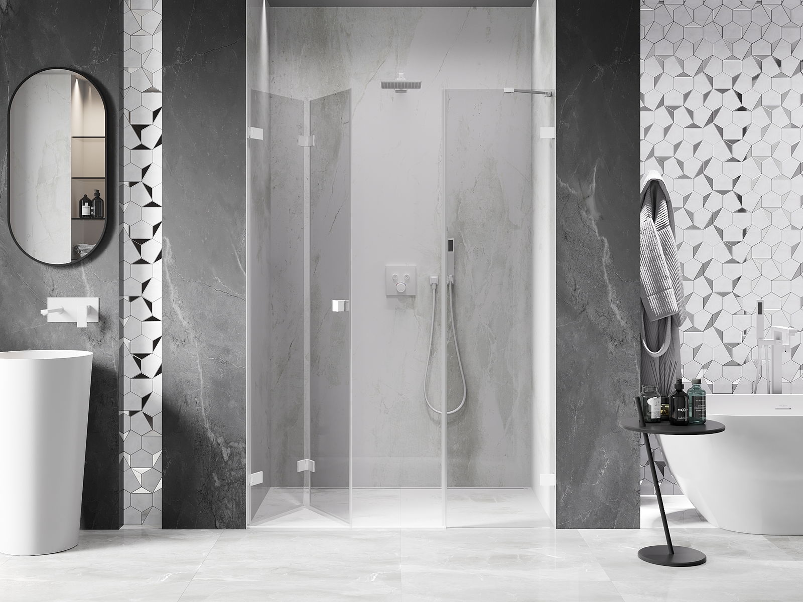 Možnosť skladania dverí, ako smerom von, tak aj smerom dnu, umožňuje získať viac priestoru počas nepoužívania sprchy. Je to ideálne riešenie pre menšie kúpeľne, maximálne využívajúce dostupnú plochu.