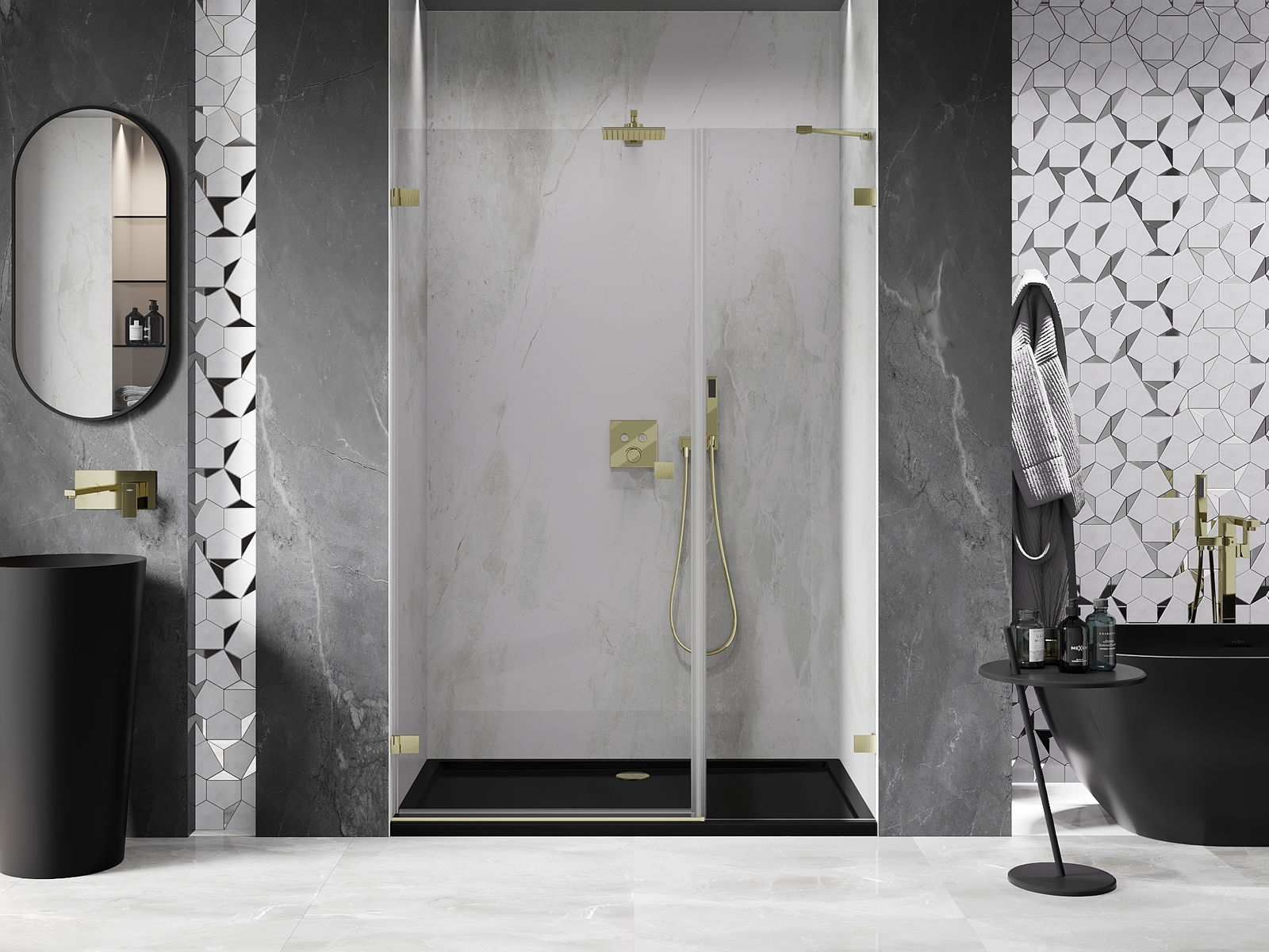 Mexen Lunar-B sprchové dvere otočné ľavé 140 cm, transparentné, zlaté brúsené - 832S-140-050-55-00-L