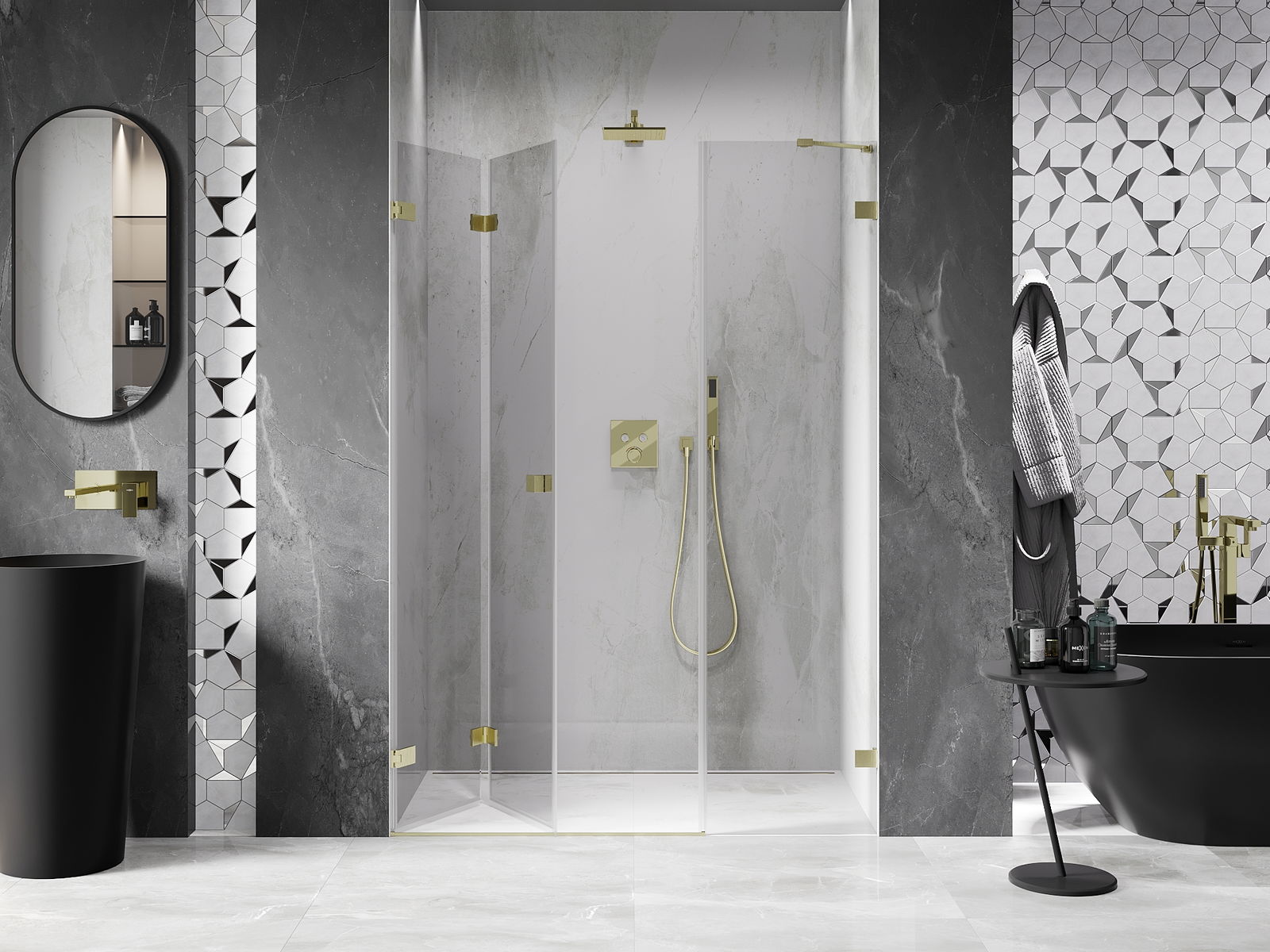 Možnosť skladania dverí, ako smerom von, tak aj smerom dnu, umožňuje získať viac priestoru počas nepoužívania sprchy. Je to ideálne riešenie pre menšie kúpeľne, maximálne využívajúce dostupnú plochu.