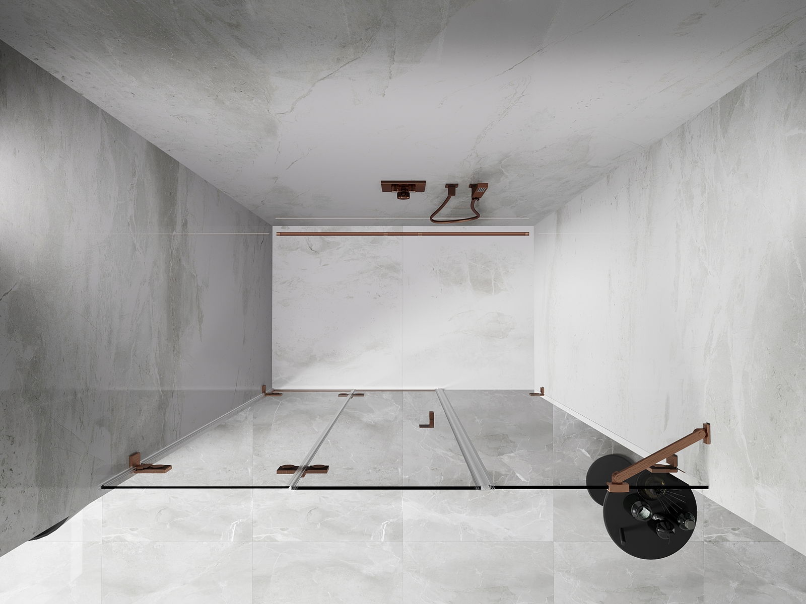 Mexen Lunar-F skladacie sprchové dvere ľavé 145 cm, transparentné, brúsená meď - 836S-145-050-65-00-L
