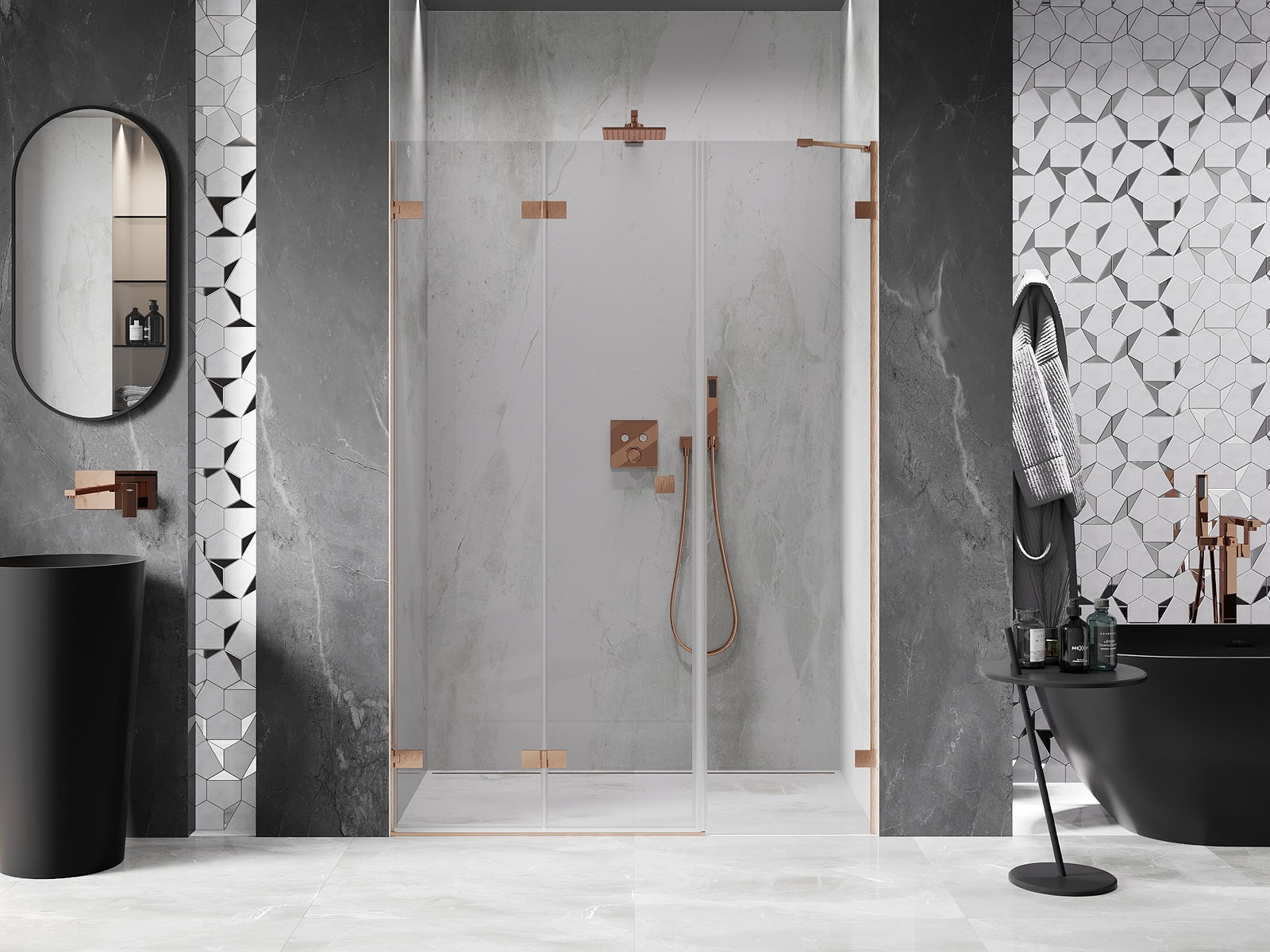 Mexen Lunar-F skladacie sprchové dvere ľavé 150 cm, priehľadné, brúsená meď - 836S-150-050-65-00-L