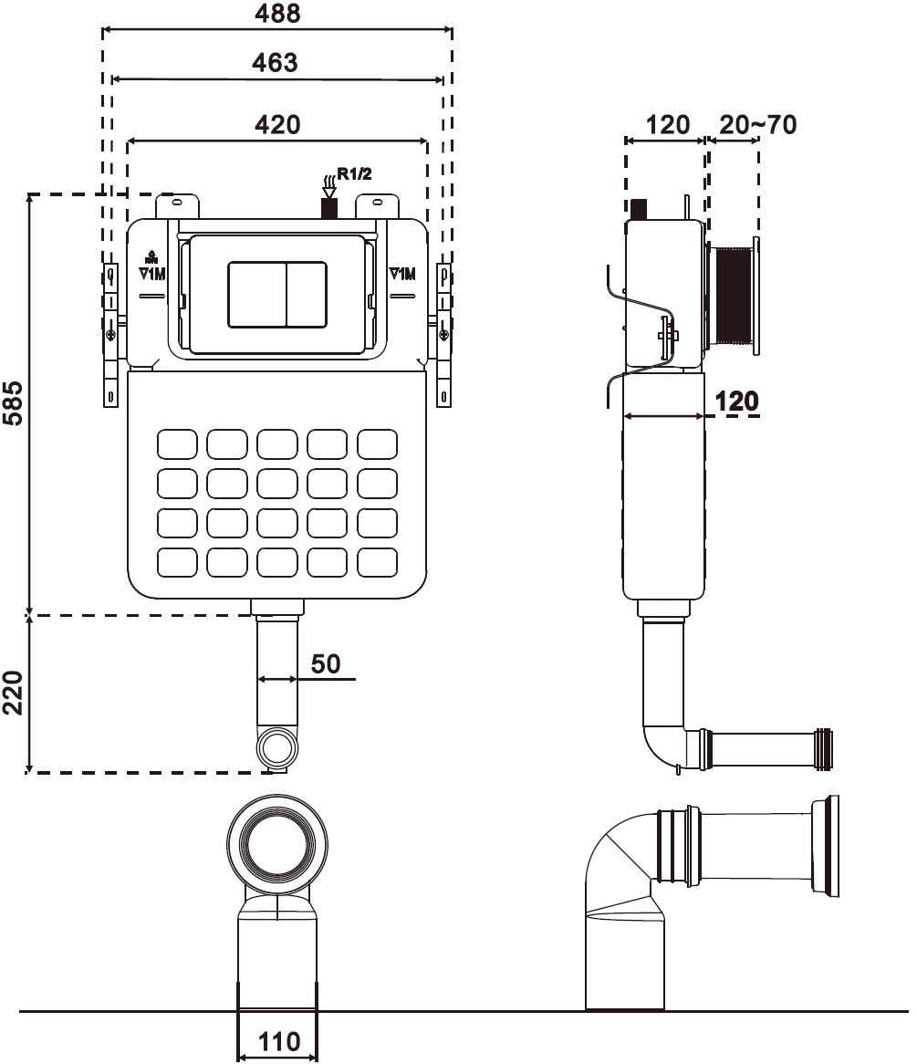 Produkt má nastaviteľné odtokové koleno, ktoré umožňuje zníženie hĺbky montáže. Táto funkcia umožňuje ľahko prispôsobiť produkt rôznym odtokom dostupným v kúpeľni, čím je zabezpečená presná montáž.