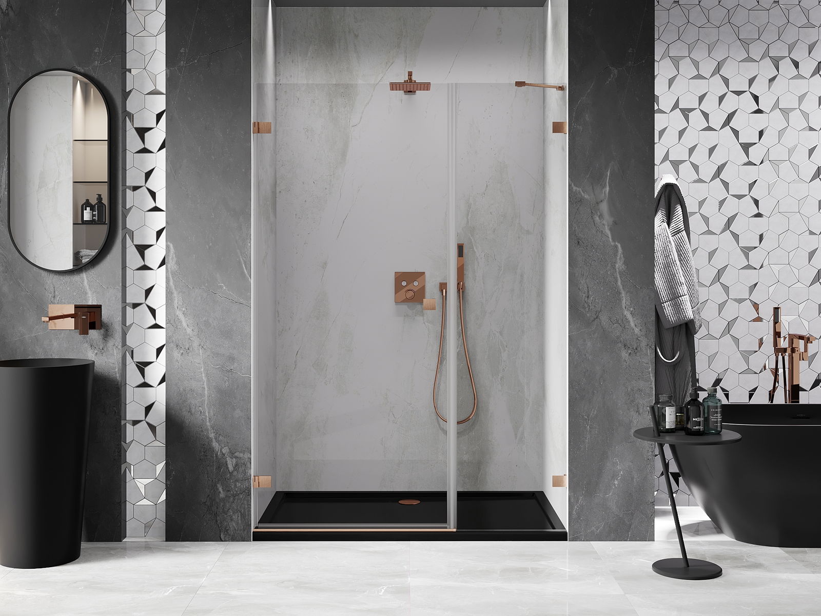 Mexen Lunar-B sprchové dvere otočné ľavé 145 cm, transparentné, brúsená meď - 832S-145-050-65-00-L