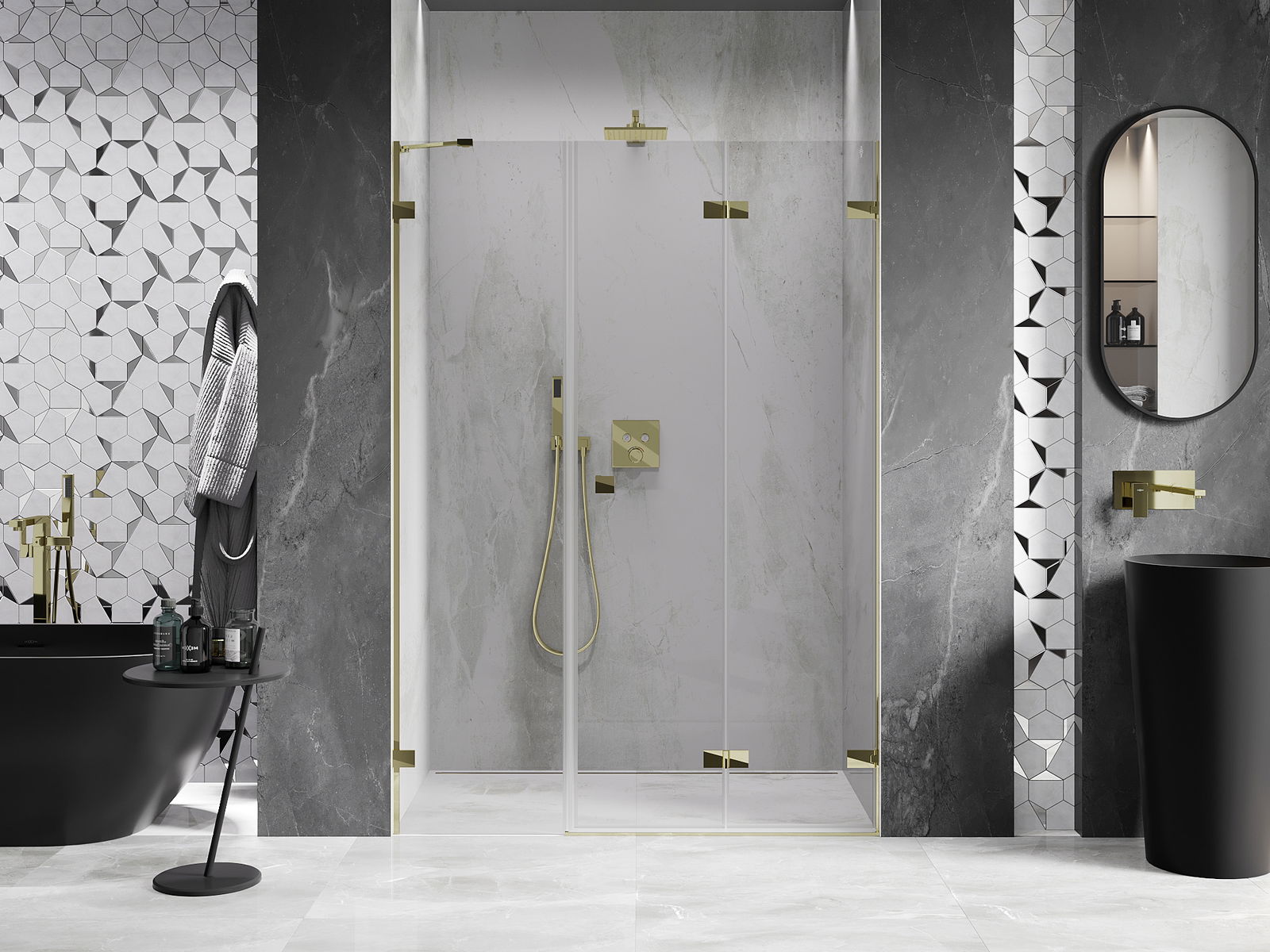 Mexen Lunar-F skladacie sprchové dvere pravé 150 cm, transparentné, zlaté - 836S-150-050-50-00-P