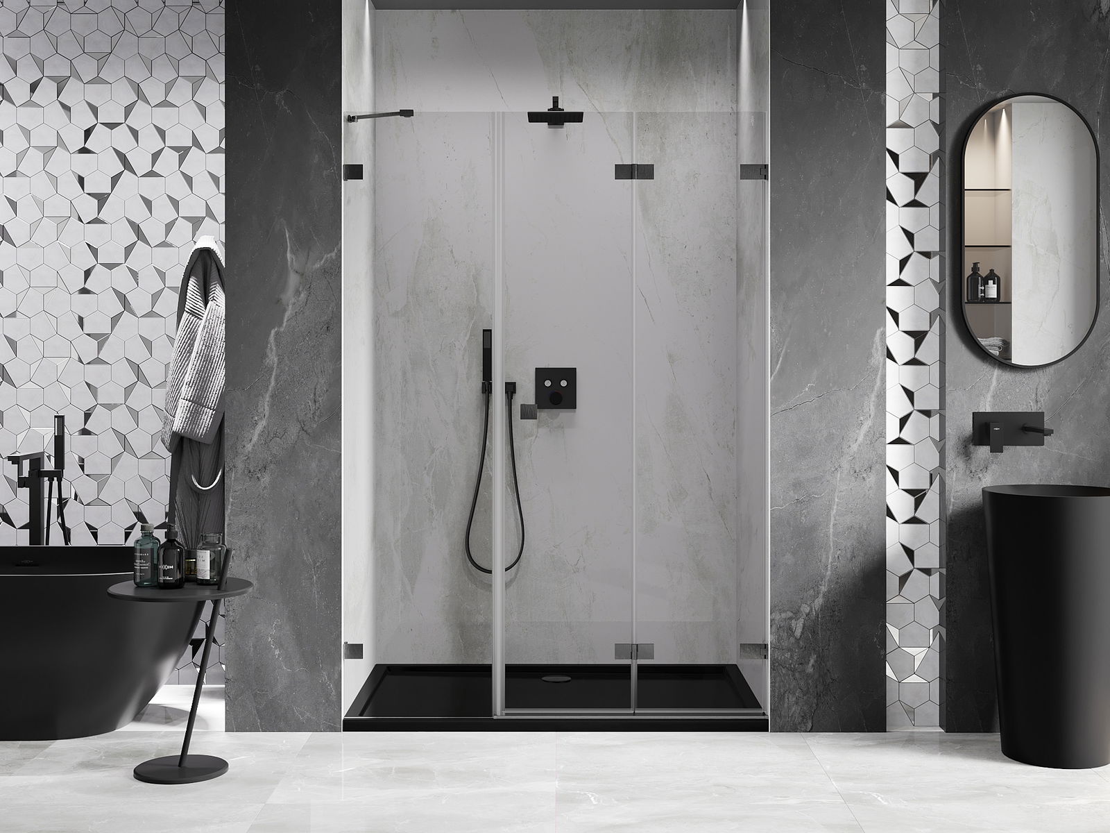 Možnosť skladania dverí, ako smerom von, tak aj smerom dnu, umožňuje získať viac priestoru počas nepoužívania sprchy. Je to ideálne riešenie pre menšie kúpeľne, maximálne využívajúce dostupnú plochu.