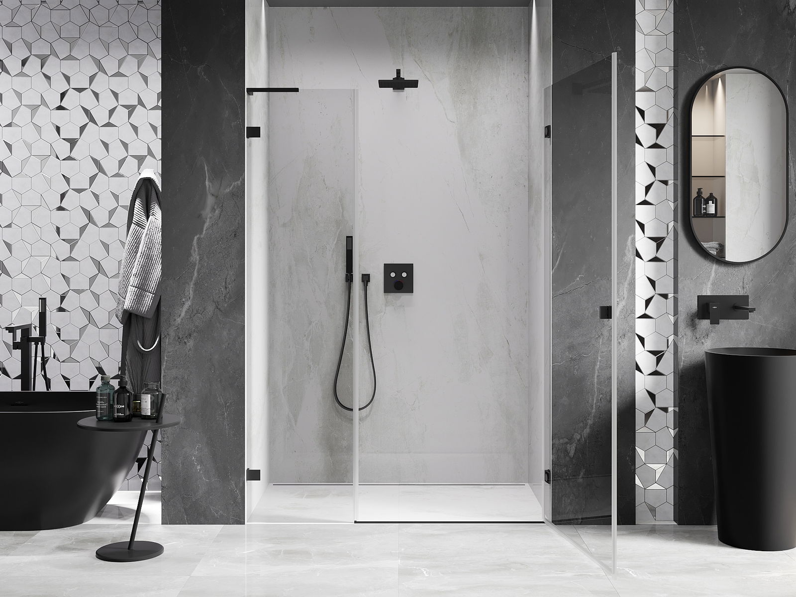 Mexen Lunar-B L sprchové dvere otočné pravé 150 cm, priehľadné, čierne - 832SL-150-050-70-00-P