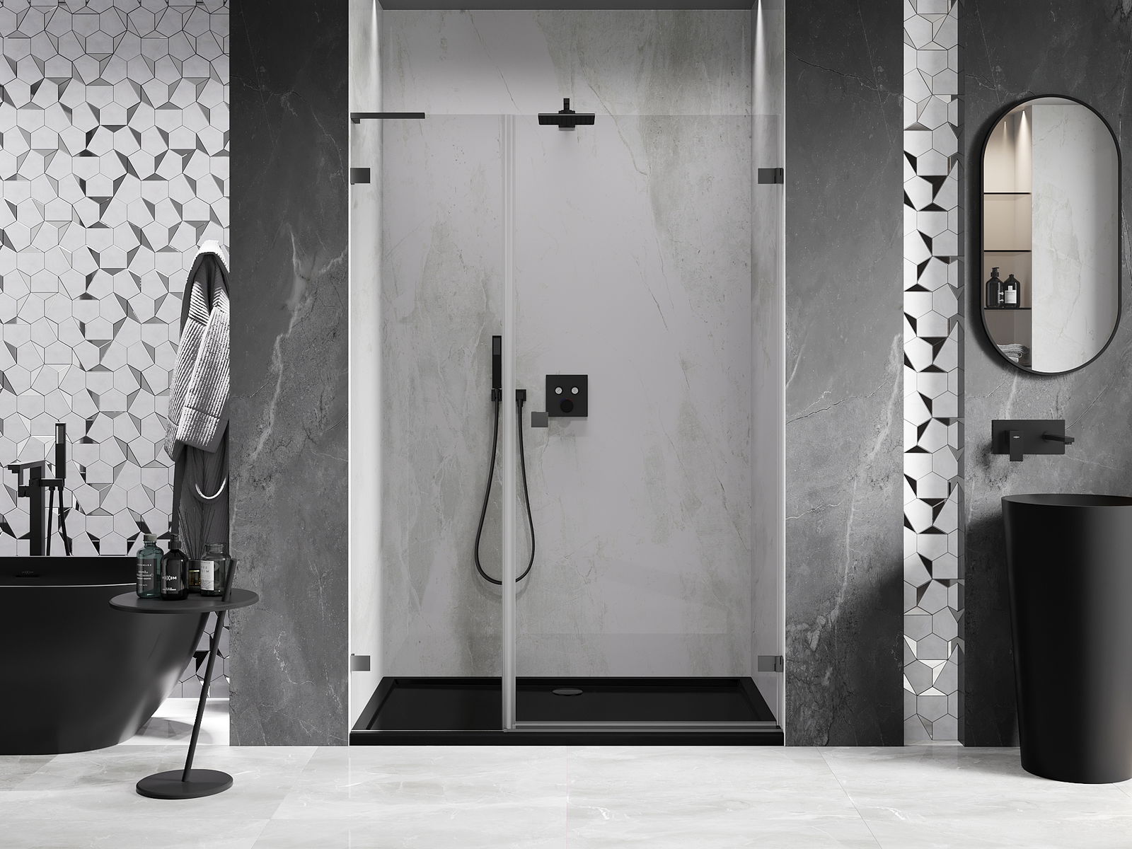 Produkt je možné podľa potreby namontovať ako na sprchovej vaničke, tak aj priamo na podlahe. Univerzálny spôsob montáže umožňuje prispôsobiť produkt rôznym typom kúpeľní a konfiguráciám priestoru.