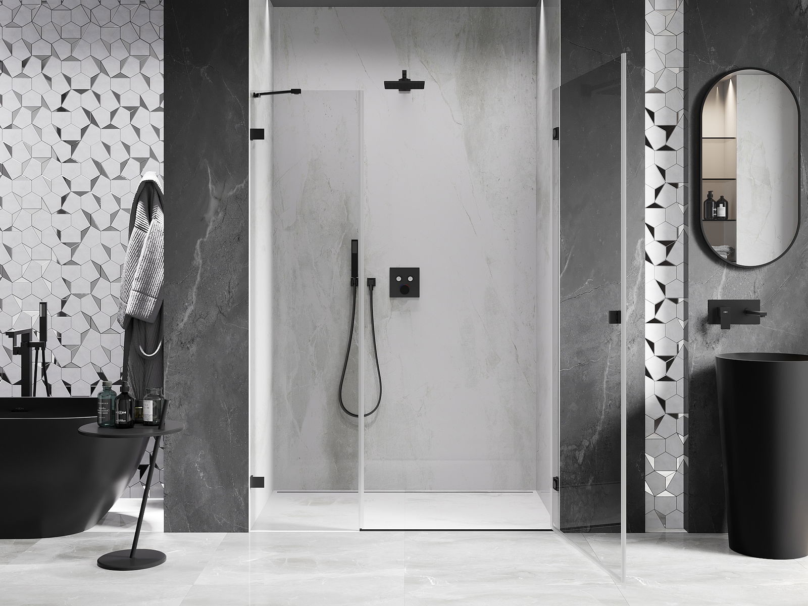 Produkt je možné podľa potreby namontovať ako na sprchovej vaničke, tak aj priamo na podlahe. Univerzálny spôsob montáže umožňuje prispôsobiť produkt rôznym typom kúpeľní a konfiguráciám priestoru.