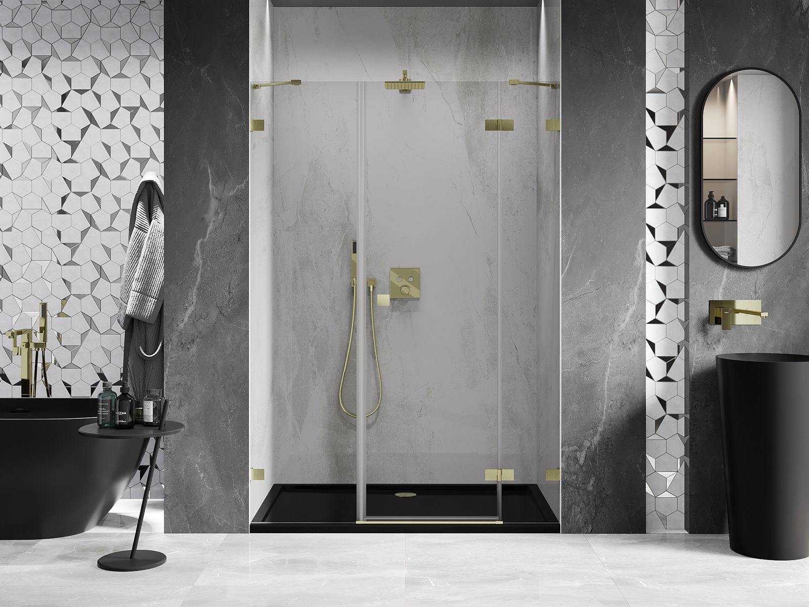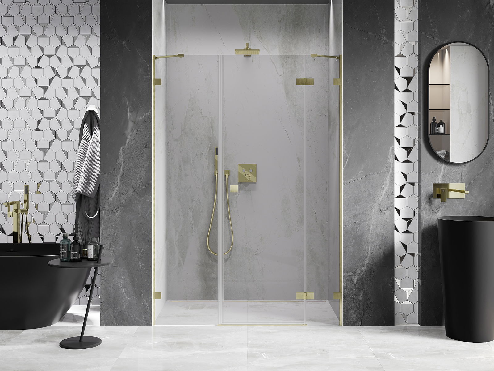 Mexen Lunar sprchové dvere otočné pravé 140 cm, transparentné, zlaté kartáčované - 834S-140-050-55-00-P