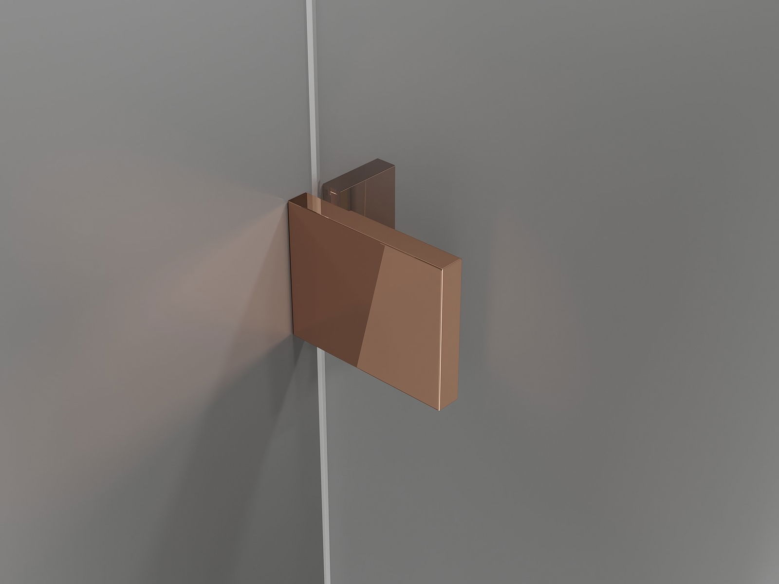 Praktická a pohodlná rukoväť je vyrobená z odolného a pevného kovu. Moderný tvar v kombinácii s povrchovou úpravou prispôsobenou farbe profilov dodáva celku moderný a štýlový vzhľad, zdôrazňujúc estetiku každej kúpeľne.
