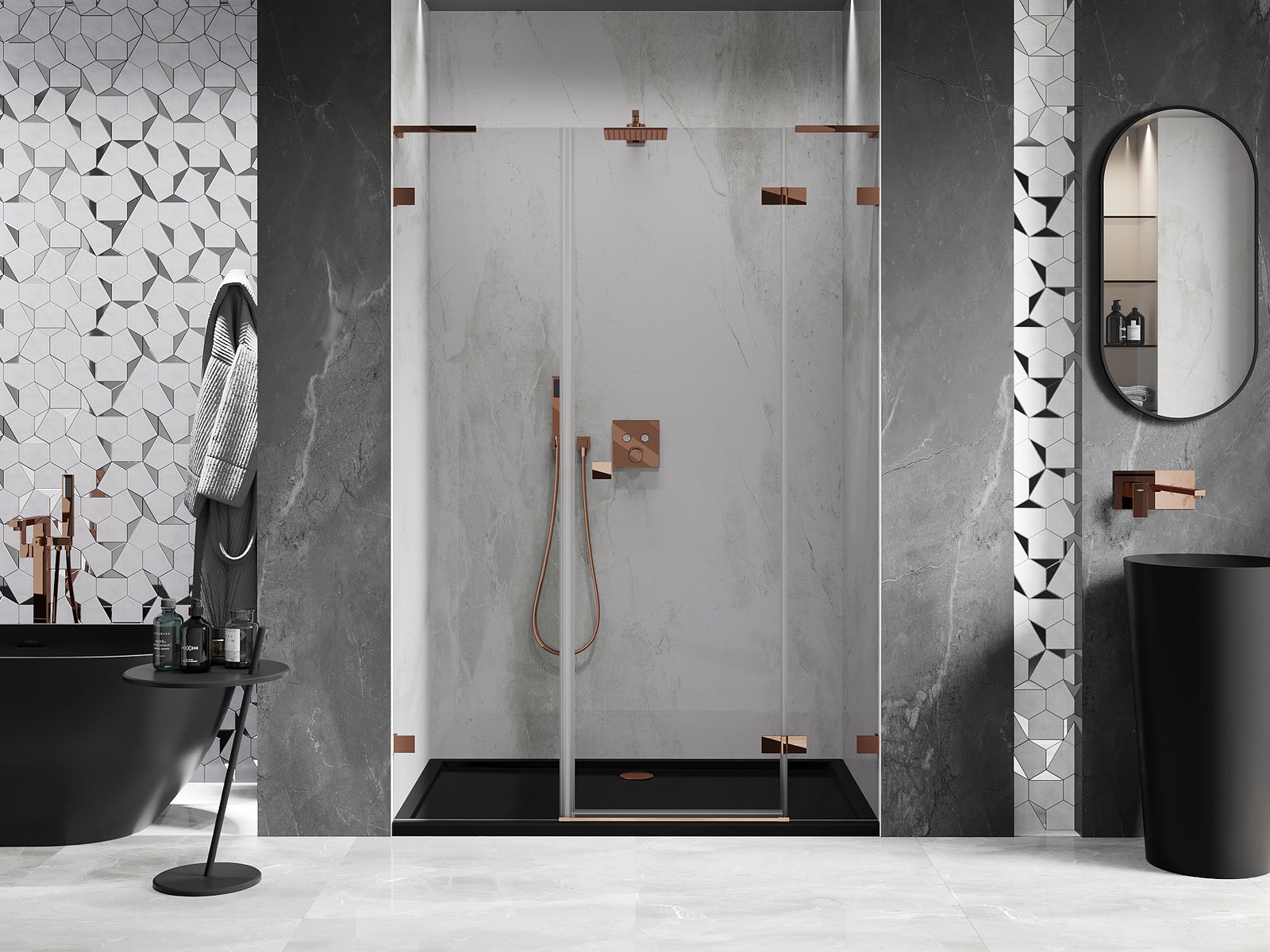 Mexen Lunar L sprchové dvere otváracie pravé 150 cm, transparentné, ružové zlato - 834SL-150-050-60-00-P