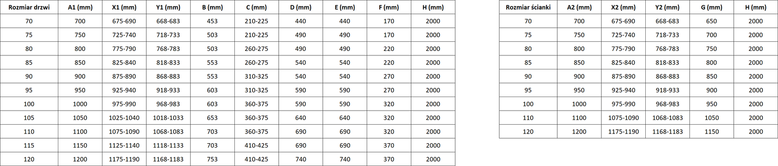 Veľkosť: 120x75 cm (dvere 120 cm, stena 75 cm)