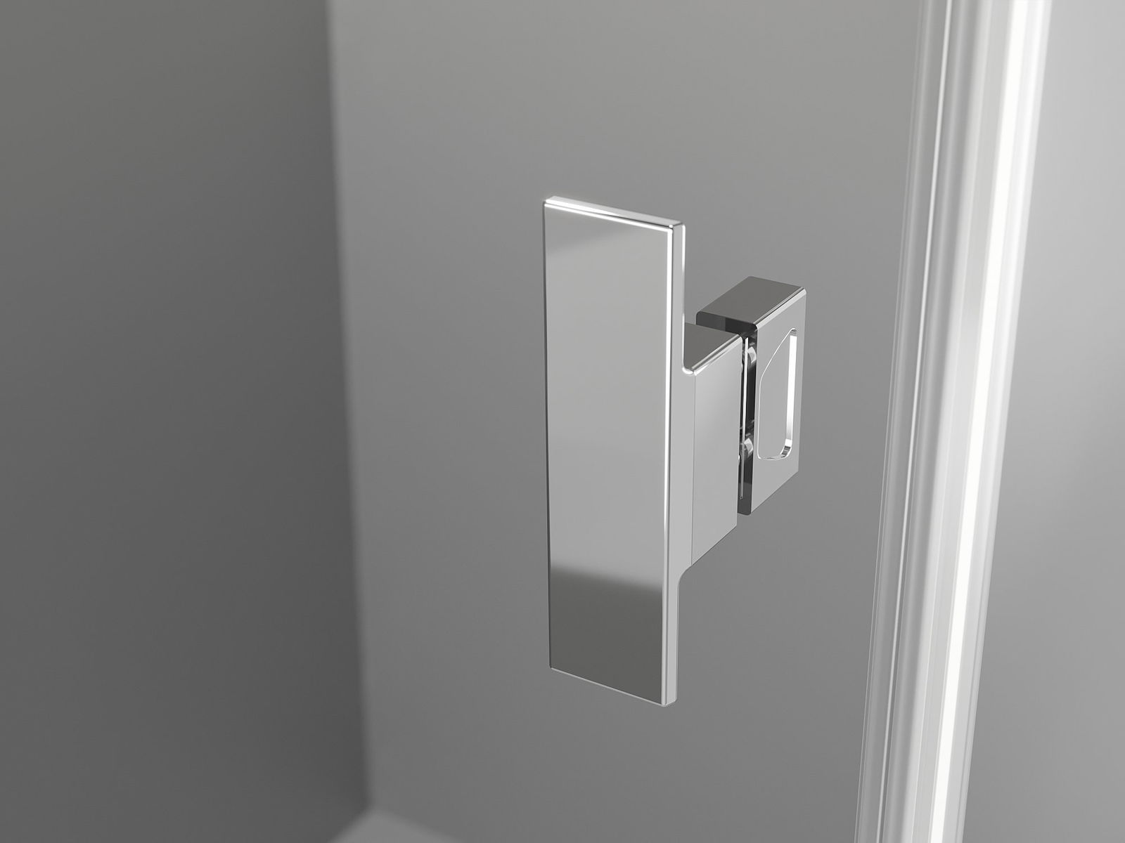 Praktická a pohodlná rukoväť je vyrobená z odolného a pevného kovu. Moderný tvar v kombinácii s povrchovou úpravou prispôsobenou farbe profilov dodáva celku moderný a štýlový vzhľad, zdôrazňujúc estetiku každej kúpeľne.