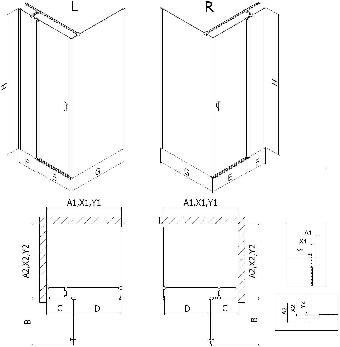 Sprchové kúty, dvere a steny sú štandardne prispôsobené na montáž na sprchové vaničky určitých rozmerov. Práve tieto rozmery sú uvedené v názve alebo popise produktu. Je však potrebné mať na pamäti, že skutočné rozmery prvkov sa môžu mierne líšiť od nominálnych hodnôt. V prípade plánovanej montáže priamo na podlahu sa odporúča dôkladne skontrolovať vonkajšie rozmery a rozmiestnenie prvkov podľa technického nákresu.