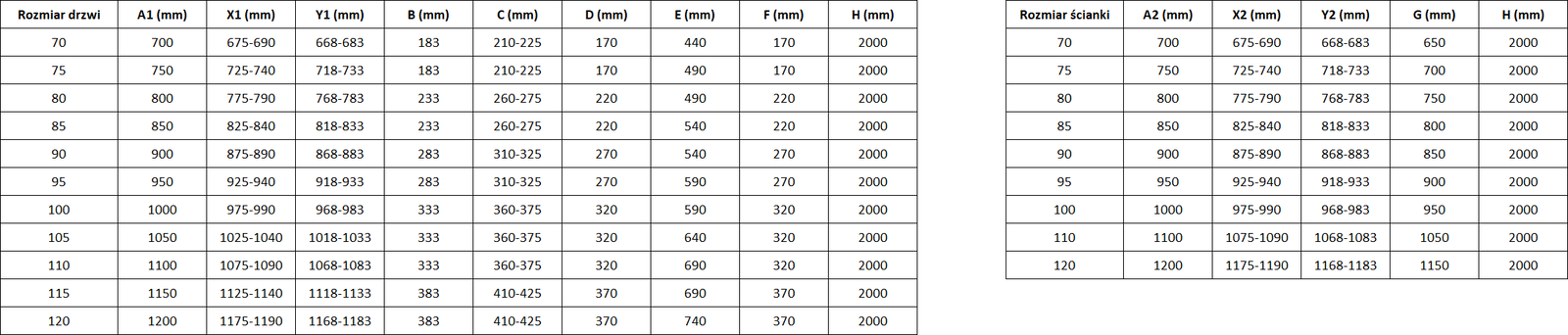 Veľkosť: 120x100 cm (dvere ľavé 120 cm, stena 100 cm)
