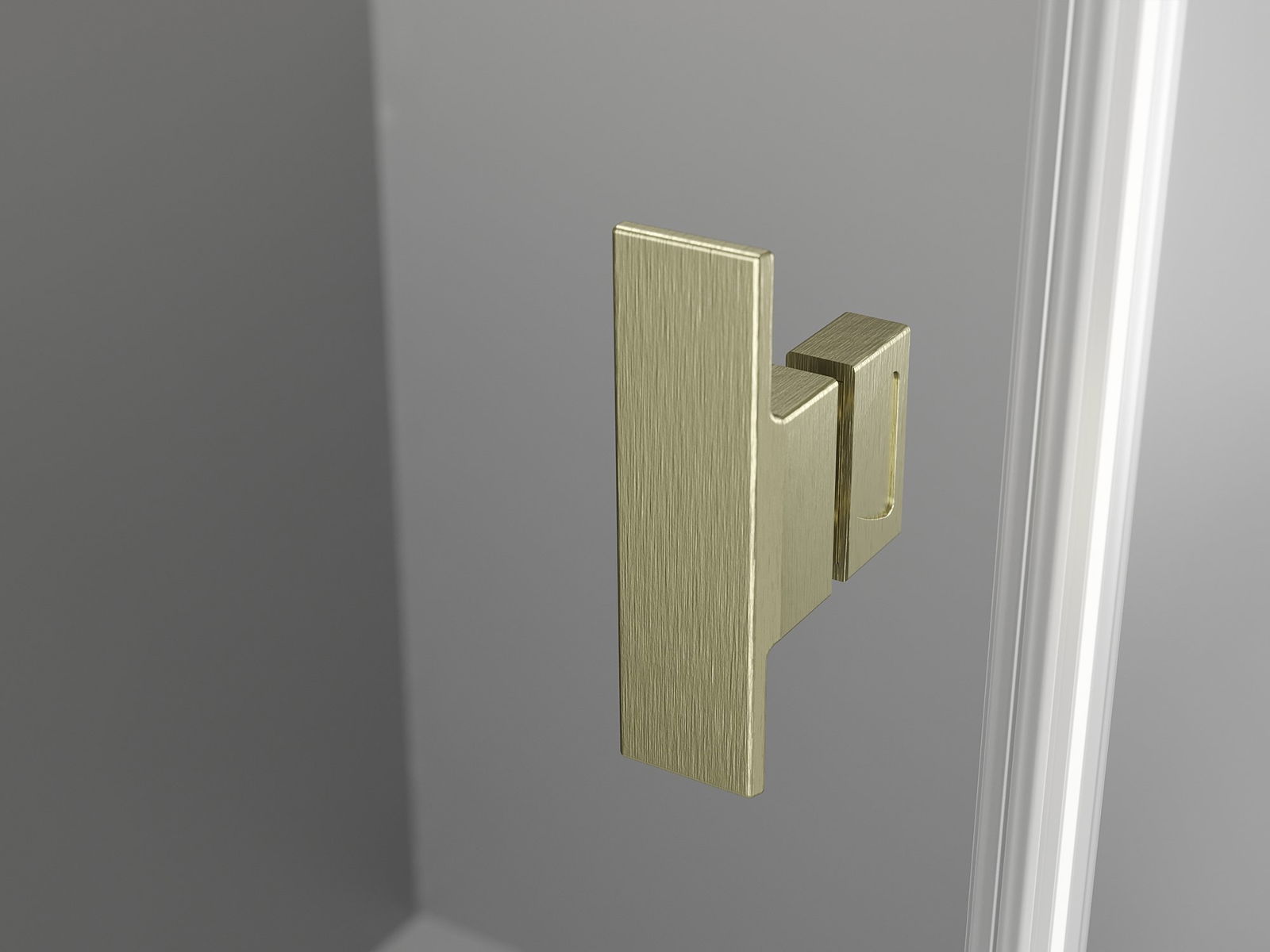 Praktická a pohodlná rukoväť je vyrobená z odolného a pevného kovu. Moderný tvar v kombinácii s povrchovou úpravou prispôsobenou farbe profilov dodáva celku moderný a štýlový vzhľad, zdôrazňujúc estetiku každej kúpeľne.
