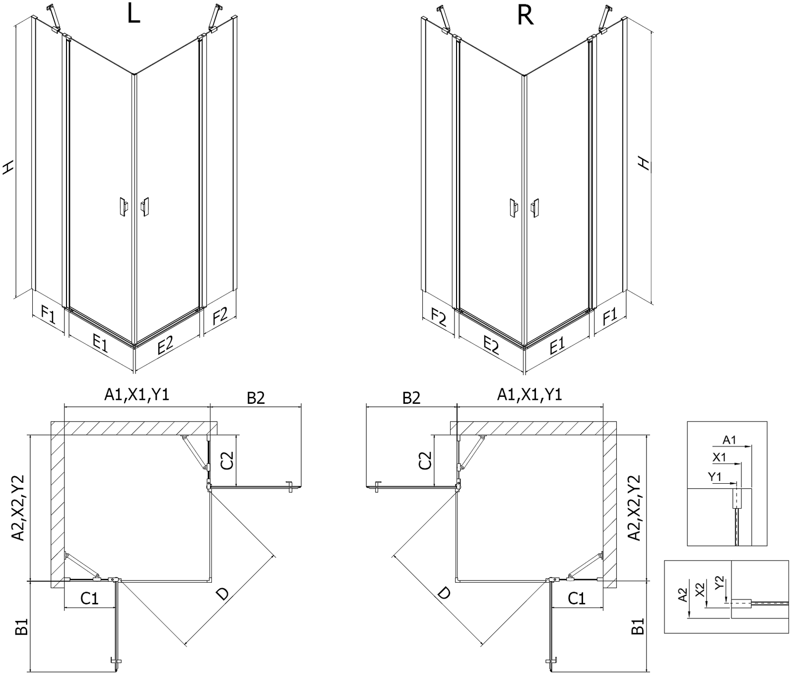 Vďaka použitiu univerzálneho systému montáže môžu byť sprchové dvere namontované na pravú alebo ľavú stranu podľa potreby. Vďaka tomu môžete ľahko naprojektovať sprchu prispôsobenú priestoru kúpeľne.