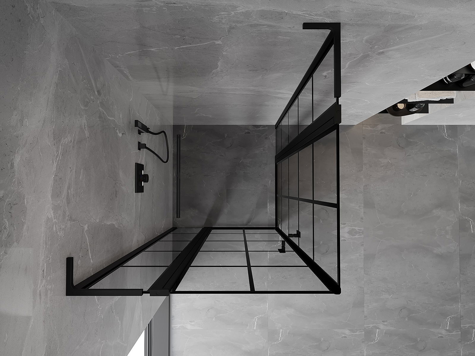 Mexen Mist L Duo sprchovací kút otvárateľný 115 x 115 cm, čierna mriežka, čierna - 8A4L-115L-115P-70-77