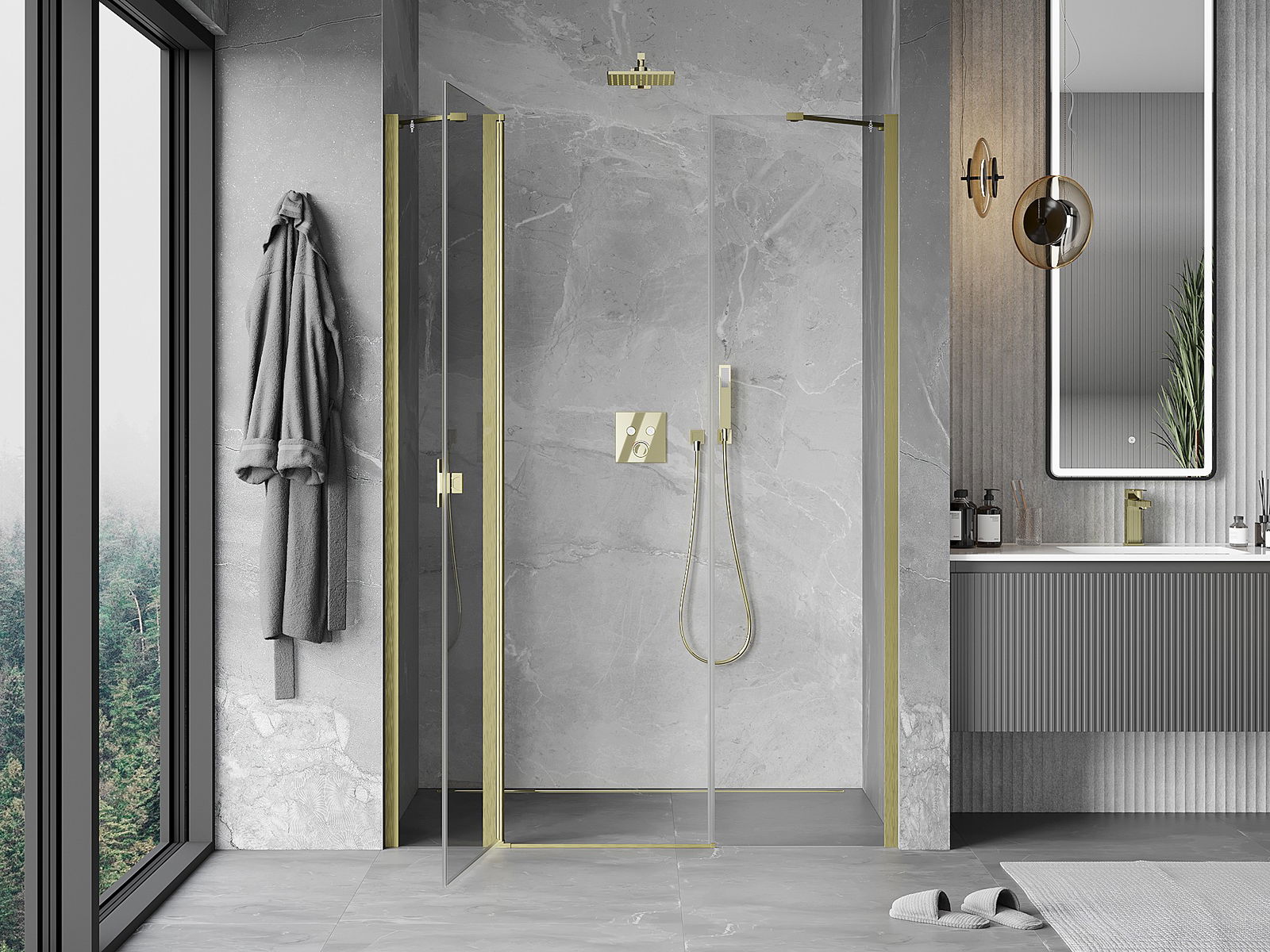 Mexen Mist sprchové dvere otočné 155 cm, priehľadné, zlaté kartáčované - 8A4-155-001-55-00
