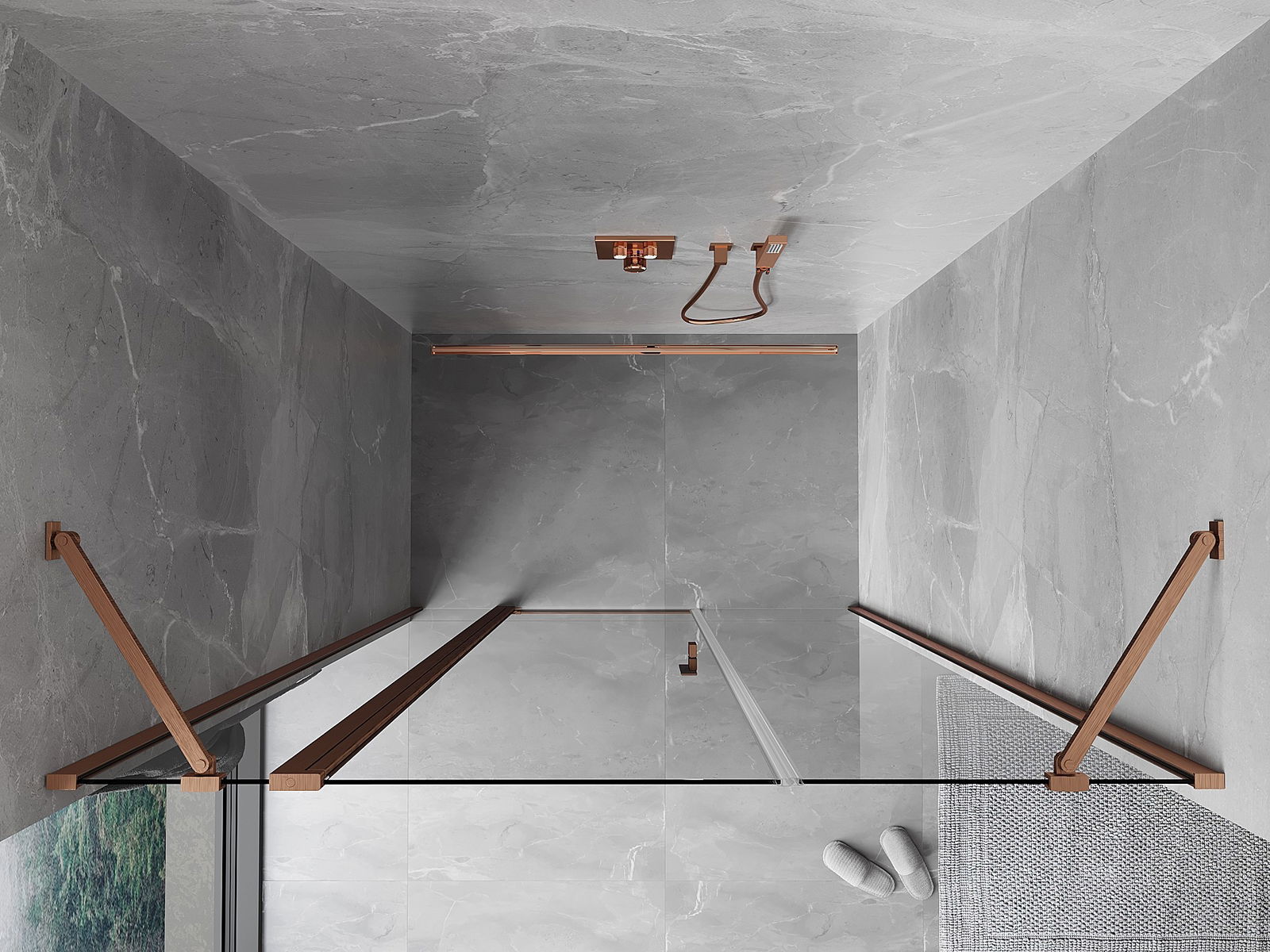 Mexen Mist sprchové dvere otočné 140 cm, transparentné, brúsená meď - 8A4-140-001-65-00