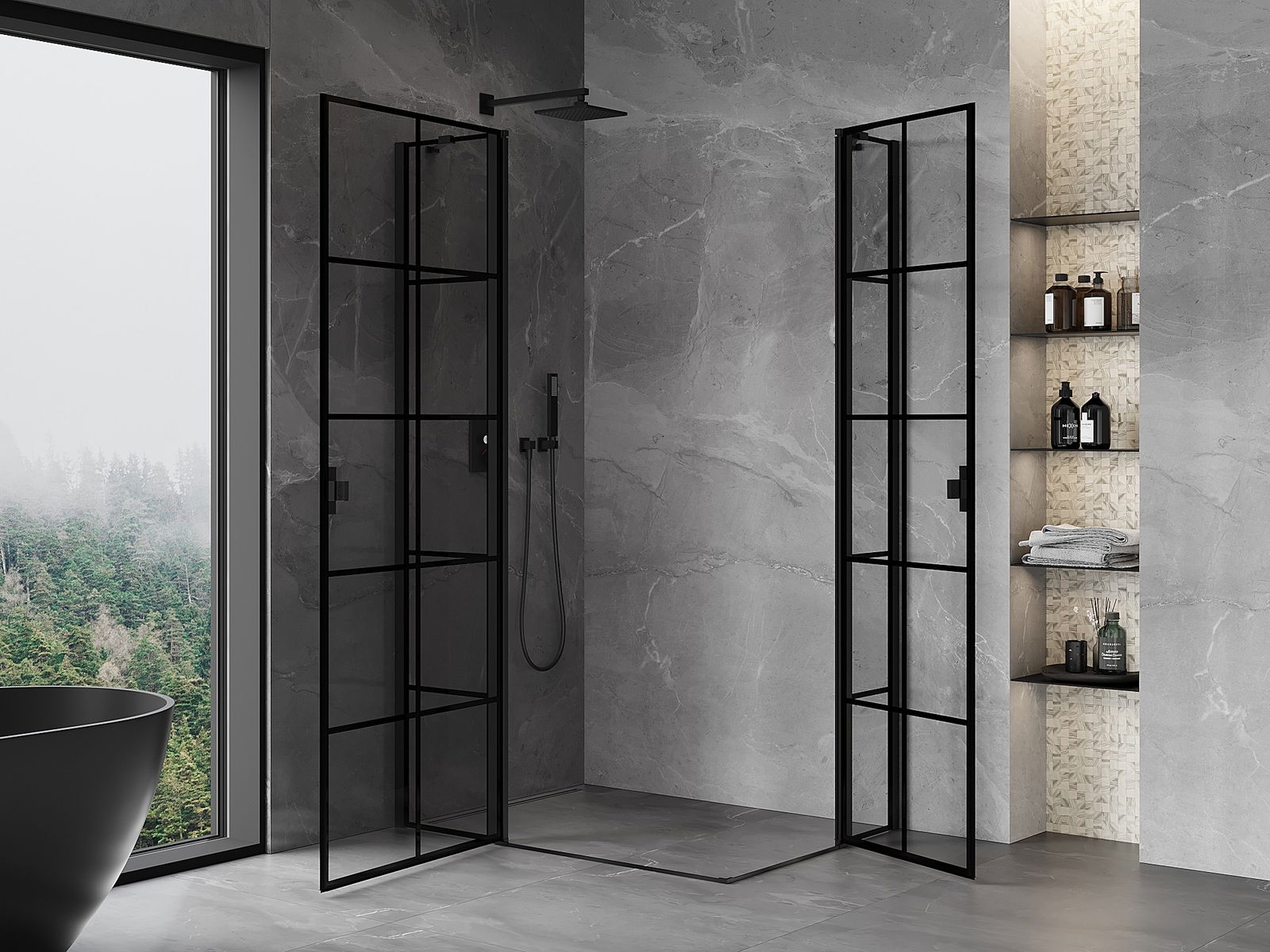Mexen Mist Duo sprchová kabína, otváracie dvere 120 x 100 cm, čierna mriežka, čierna - 8A4-120L-100P-70-77